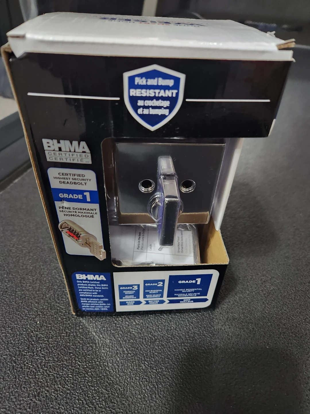 39Selling a brand new Weiser SmartKey Security deadbolt! It's still in its original packaging and ready to go. This deadbolt features SmartKey Security to protect against advanced break-in techniques. Easy to install, fitting all standard doors. Trusted since 1904! Polished Chrome Colour