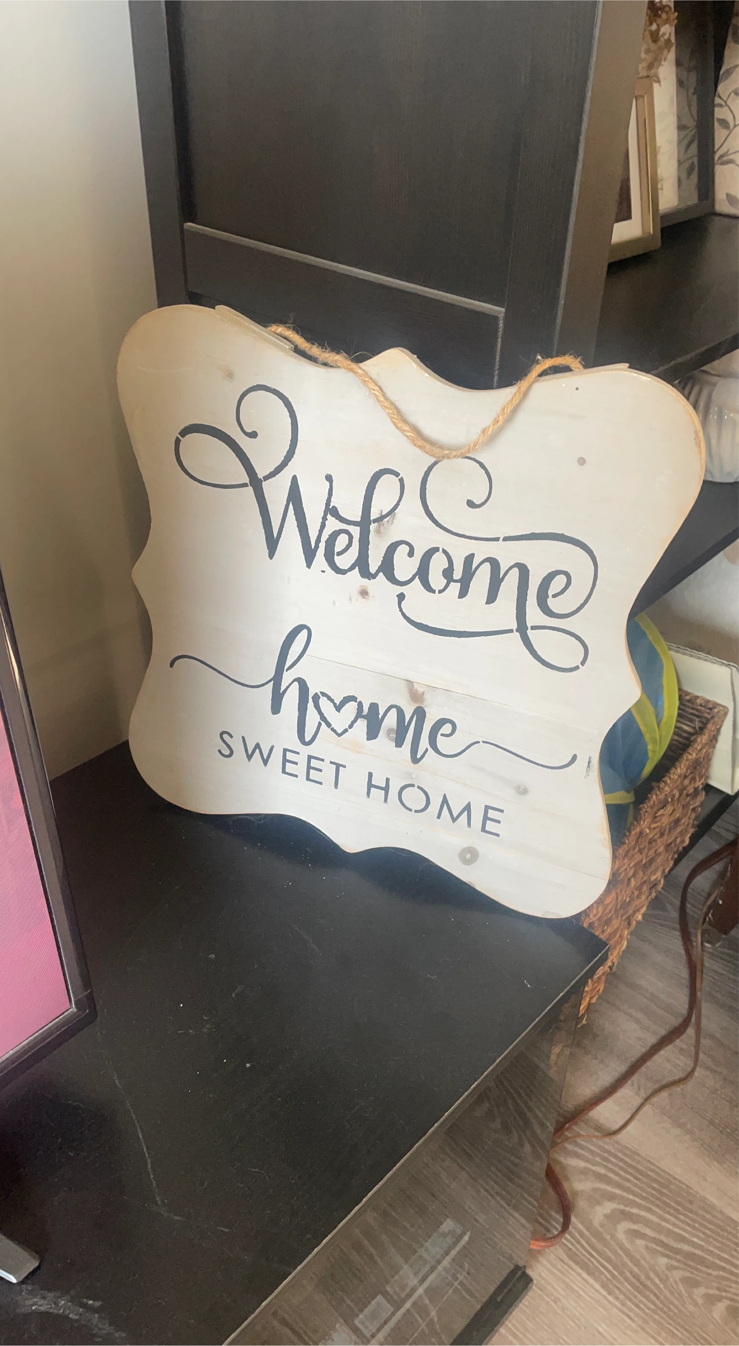 A cute wooden sign that says "Welcome Home Sweet Home" in a lovely script font! Perfect for adding a touch of warmth to your entryway or living room