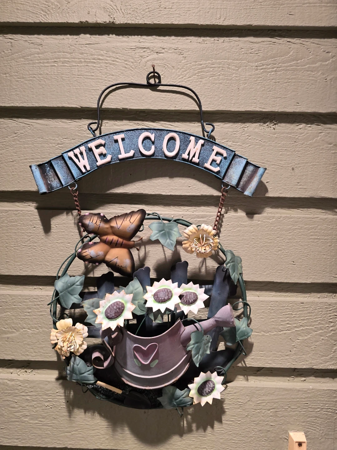 67This charming welcome sign features butterflies and flowers, perfect for adding a touch of whimsy to your home or garden