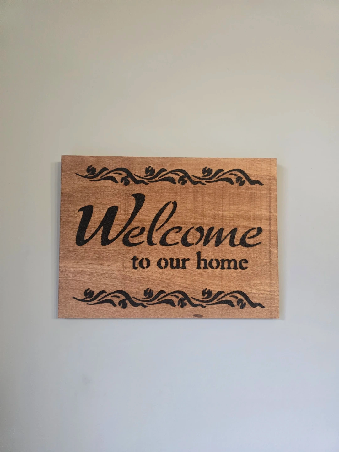 60A charming wooden sign that says 'Welcome to our home', perfect for adding a warm touch to any entryway or living space On a 9"x12" wood canvas