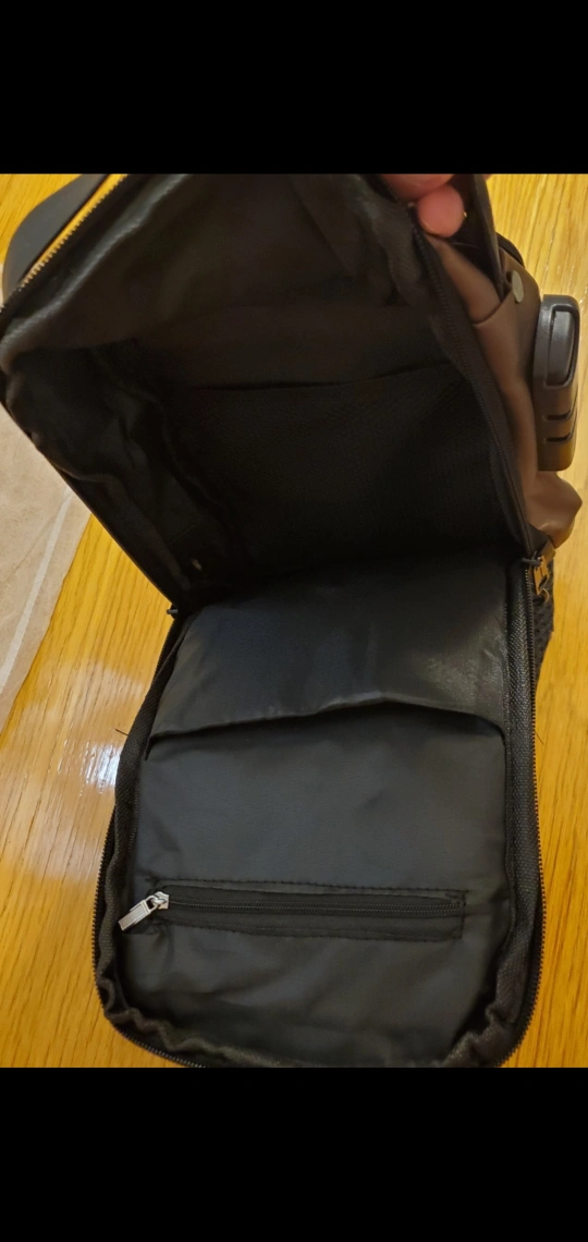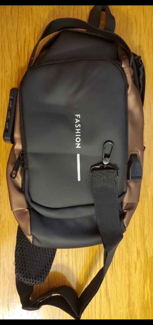 A sleek sling bag. Features a locking mechanism. Offers multiple pockets. Includes a comfortable strap. A perfect way to keep your valuables close and safe, wouldn't you say.