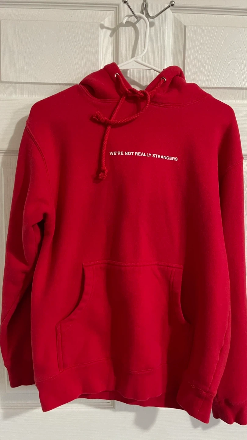 60Selling a “We’re Not Really Strangers” red hoodie in size small! No stains or visible marks, originally purchased off of the WNRS website. Message me with any questions!