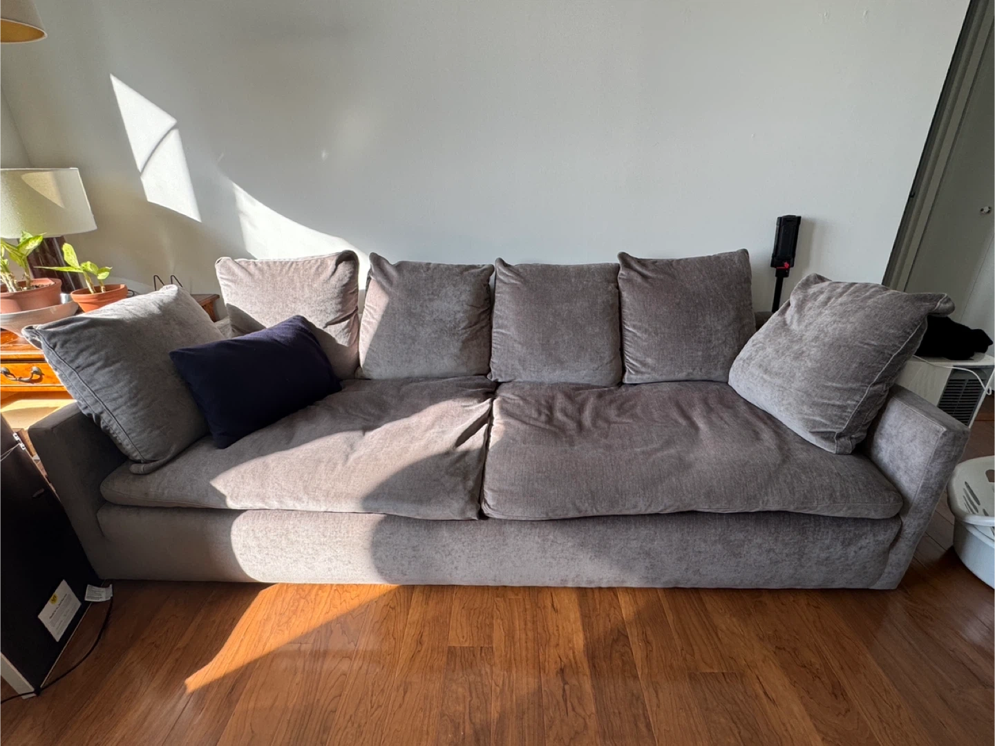 70Selling a comfortable sofa in a neutral gray color. It's a great piece for any living room setup. It features several cushions for added comfort and style. Perfect for lounging!