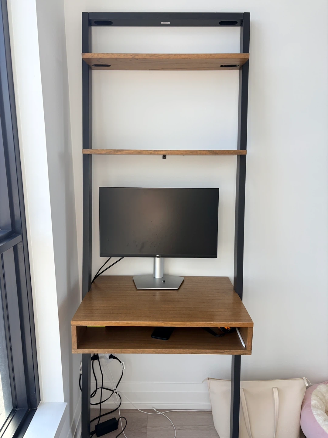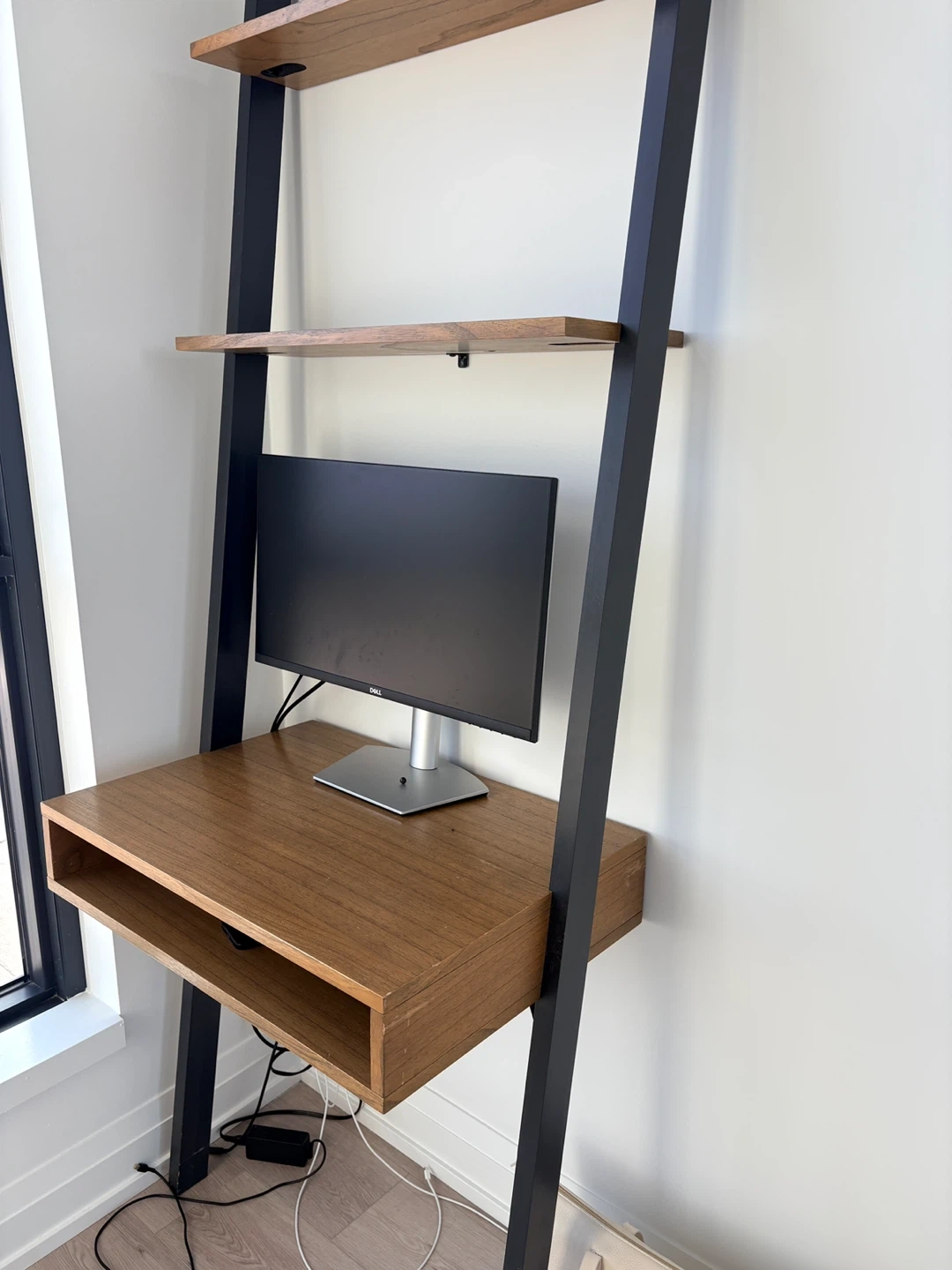 Selling a West Elm ladder shelf desk! It's in great shape and perfect for a small space. The desk has a built-in shelf and an open drawer for storage. It's a stylish and functional piece of furniture that would look great in any room. Screen not included.