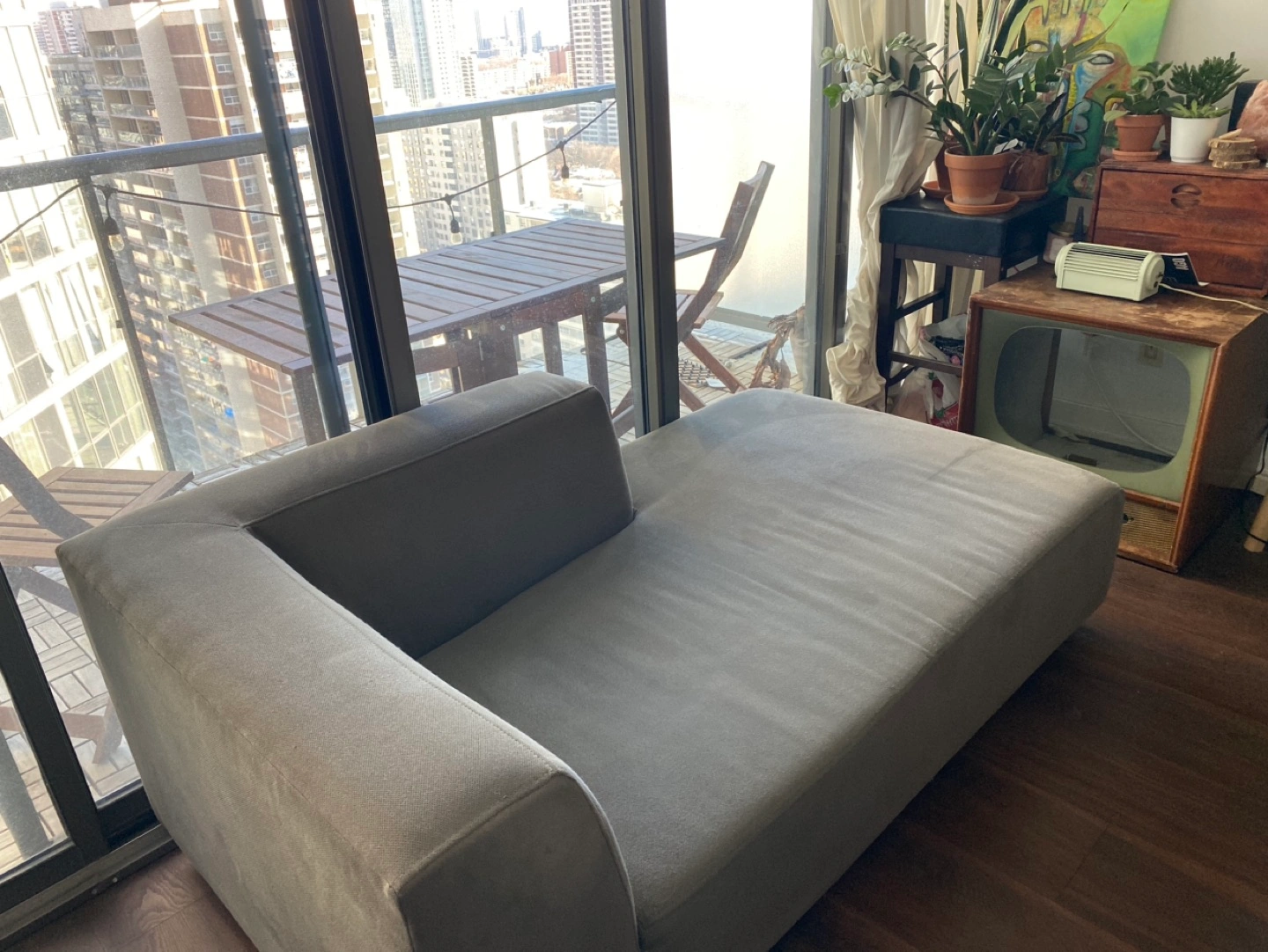 Selling a grey west elm sofa / love seat. Great for a condo and very comfortable. The sofa is still in good condition with durable fabric. This is from a pet free house and smoke free smell. No stains. Width 68 inches Depth 38.5 inches Seat height 14 inches Total heigh 40 inches Pick up from near Bloor and Yonge. Delivery not included