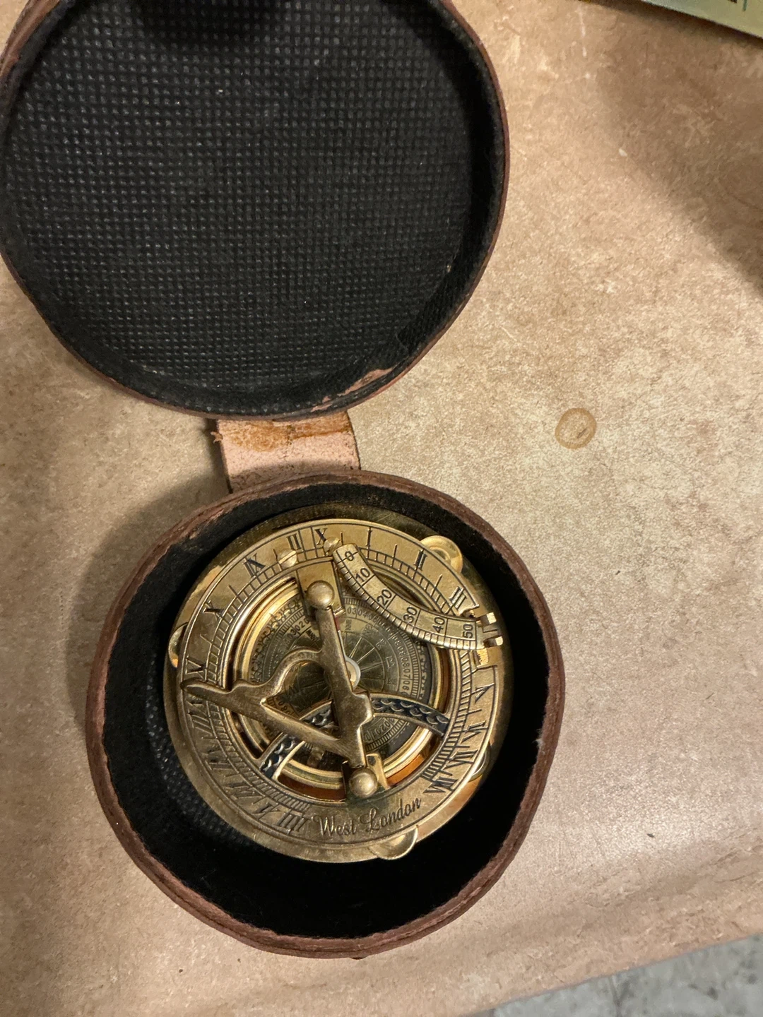136Selling a beautiful brass sundial compass from West London! It comes with its original case, perfect for keeping it safe and sound. This piece is both functional and a lovely decorative item for your home or office. It's in great condition and ready for a new owner!