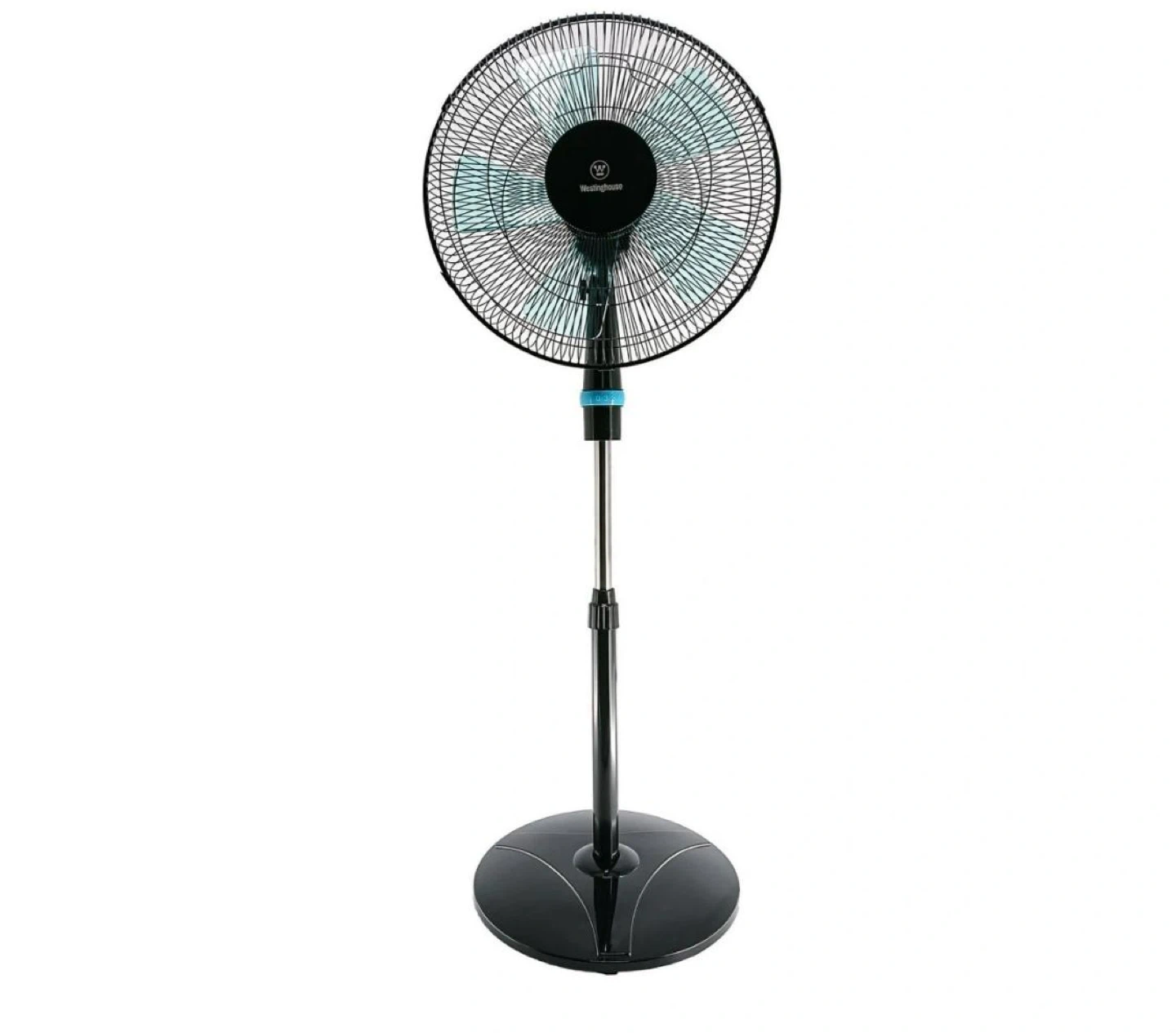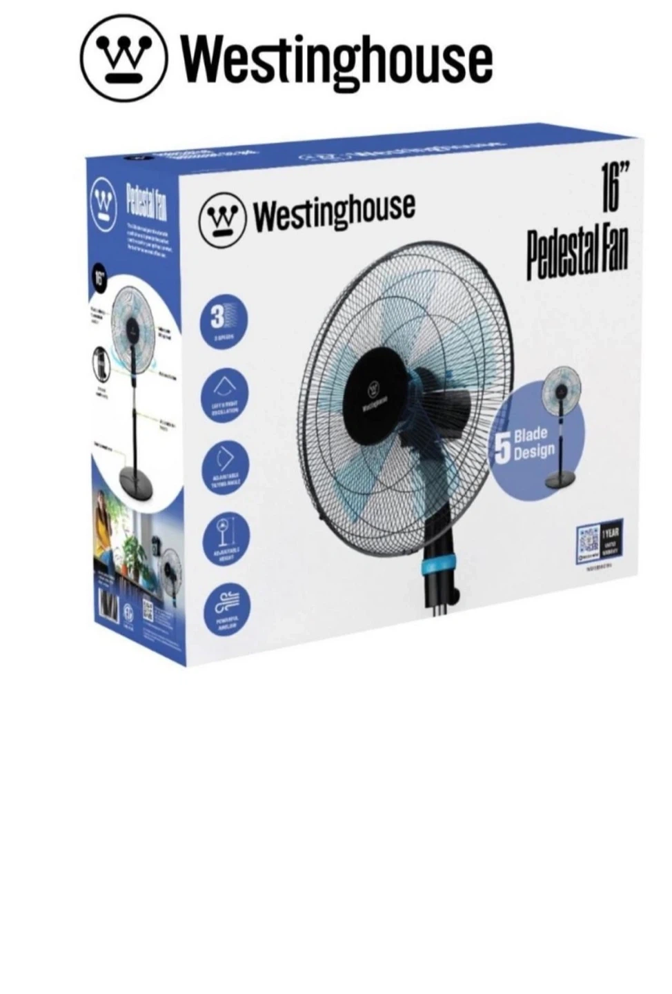 Selling a Westinghouse 16" Pedestal Fan. It features 3 speeds, left to right oscillation, adjustable height, and a 5-blade design. Great for keeping cool during the summer months!