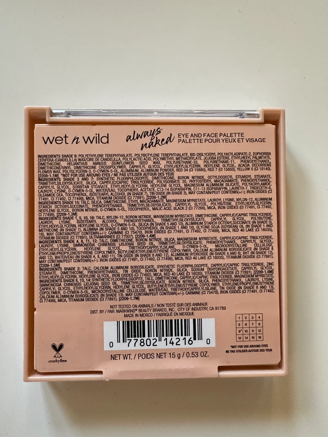 65Selling a Wet n Wild Always Naked Eye and Face Palette. It's in great condition and perfect for creating a variety of looks! The palette contains a mix of matte, shimmer, and glitter shades. Net weight is 15 g / 0.53 oz