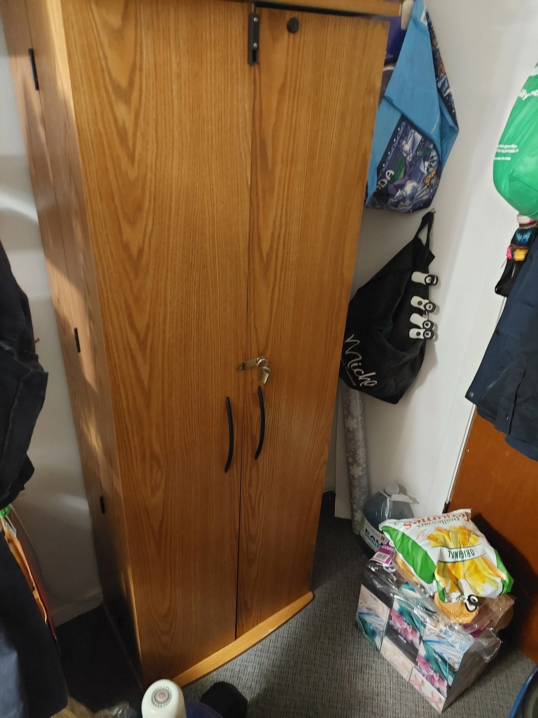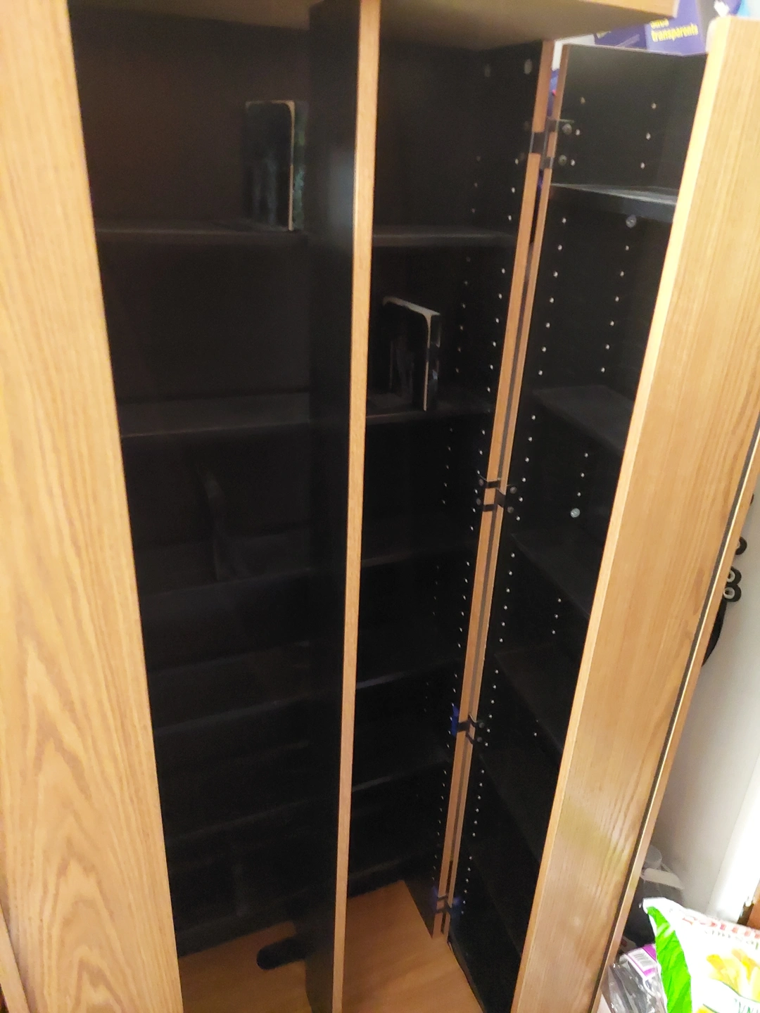 Selling a wooden media storage cabinet. It's in good condition and has plenty of space for storing your movies, games, or books. Perfect for keeping your entertainment area organized!