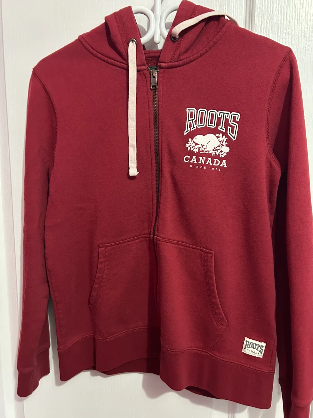 Selling a Roots full zip hoodie in red and a pair of Roots sweatpants in navy. Both are in great condition and ready for a new home! Perfect for cozy days or casual outings