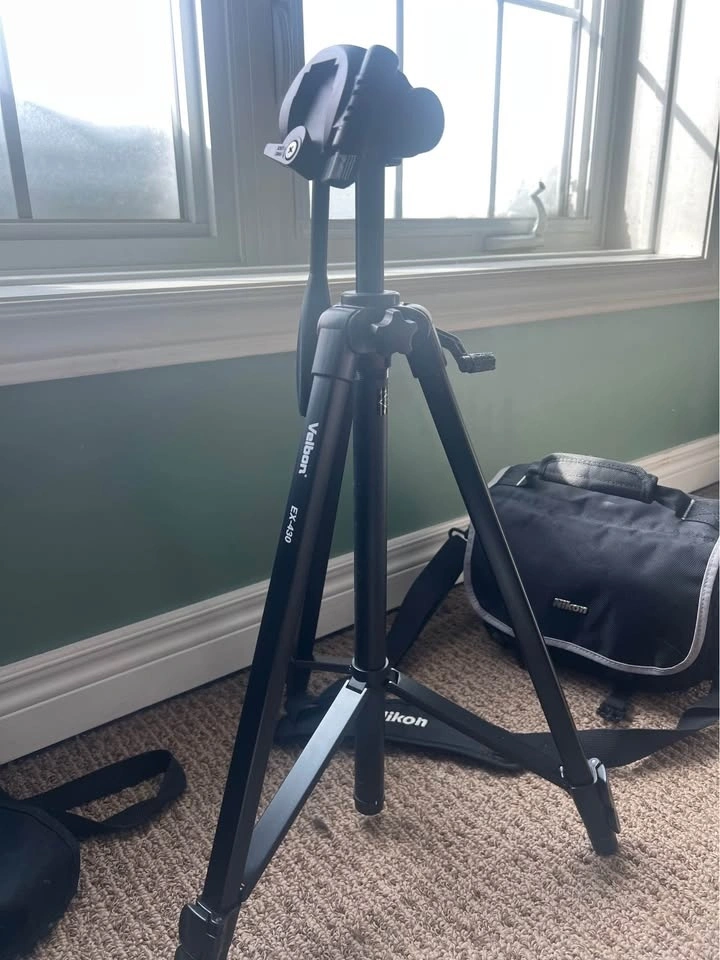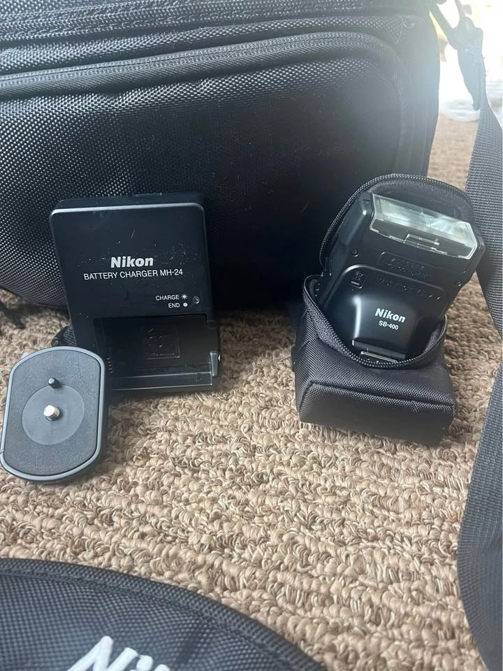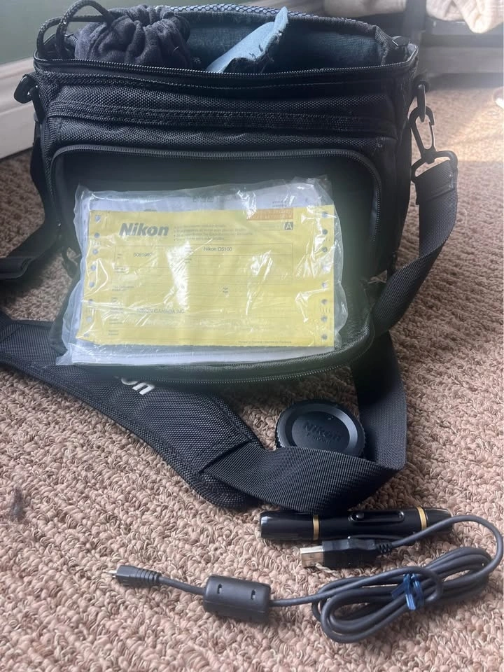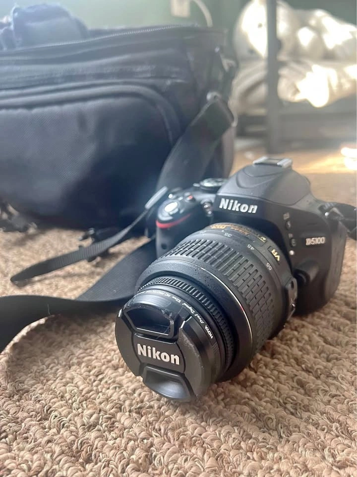 Gently used Nikon D5100, hasn't been used in over five years. Includes two lenses (one extended), lens covers, battery charger, lens cleaner, extra flash, Nikon branded carrying case, tripod, and tripod bag. The only damage is to a turn knob on the tripod.