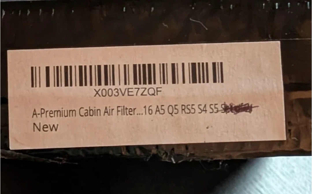 New A-Premium cabin air filter. Fits 2016 Audi A5, Q5, RS5, S4, S5. Includes original packaging.