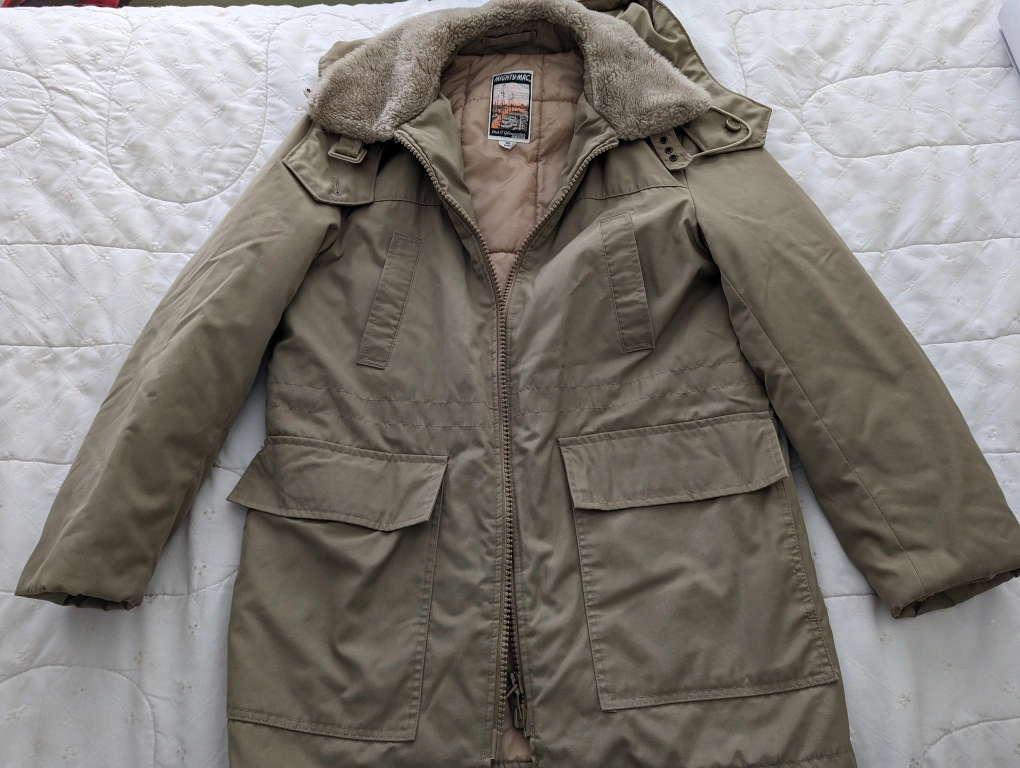 hi I have a beige Winter coat for sale. Mighty mac brand. men's 36, but could fit women's large. faint marks on inside of hood, otherwise great condition!We might be in your neighbourhood sometime, so if you don't think you can make it here, try me anyways! Thanks! Always up to trade as well! smoke and pet free home