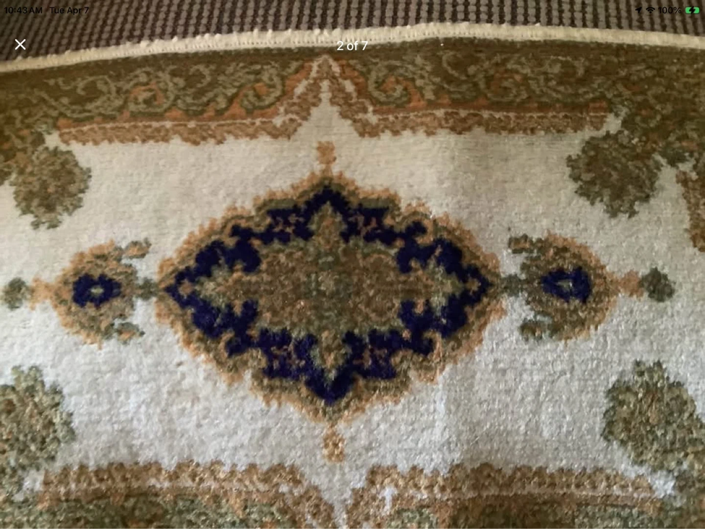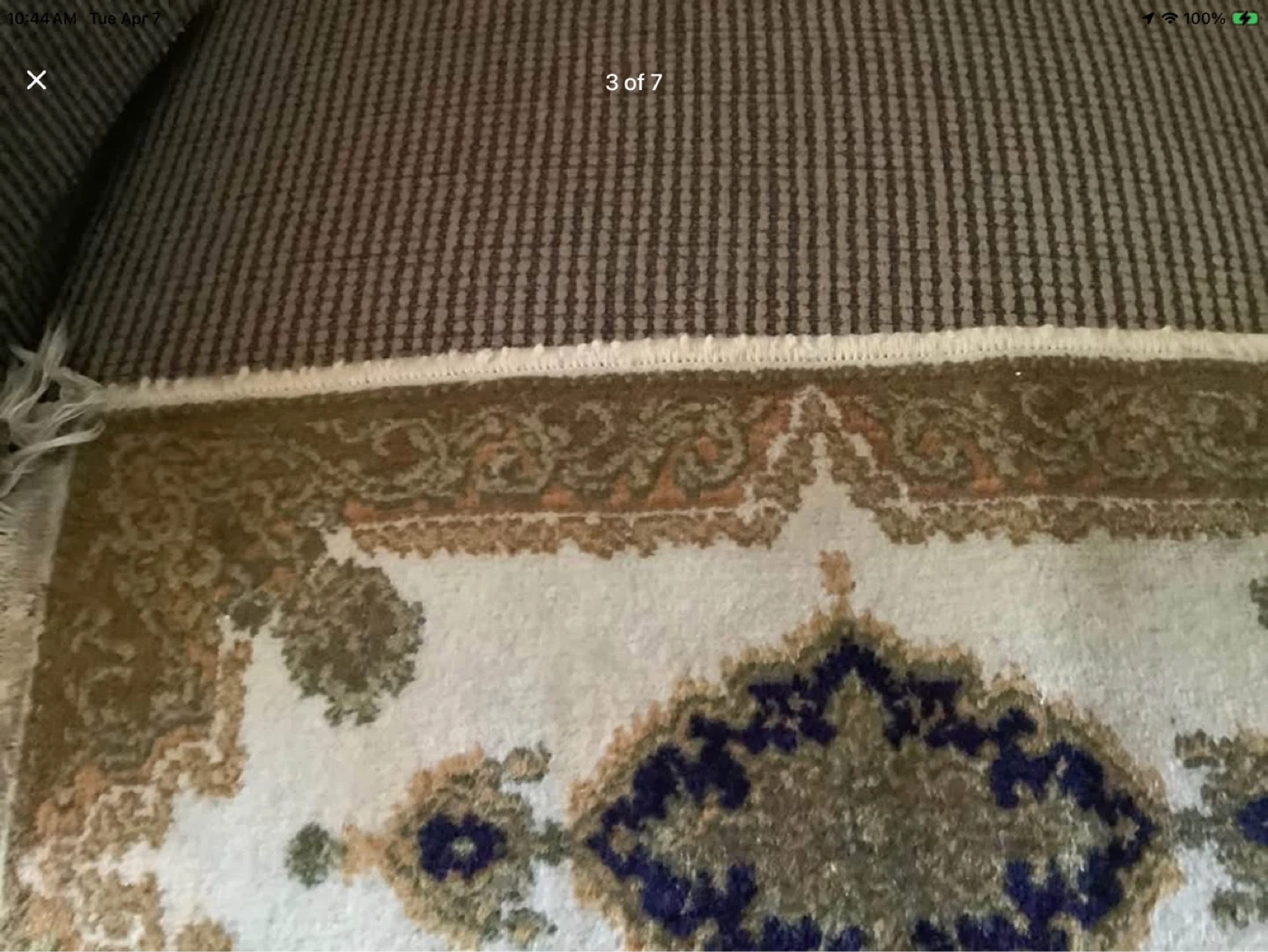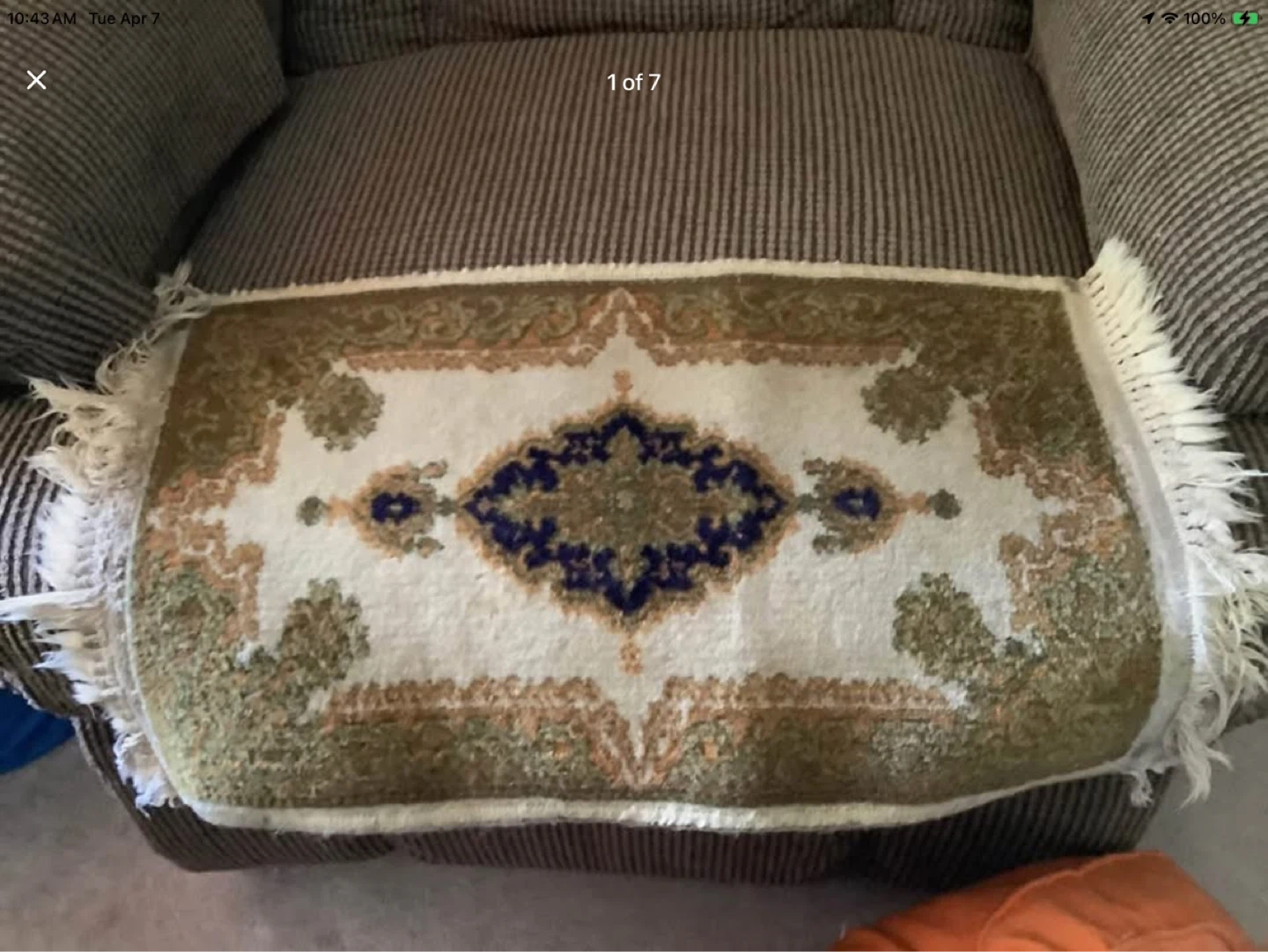 Lovely patterned fringed prayer rug.