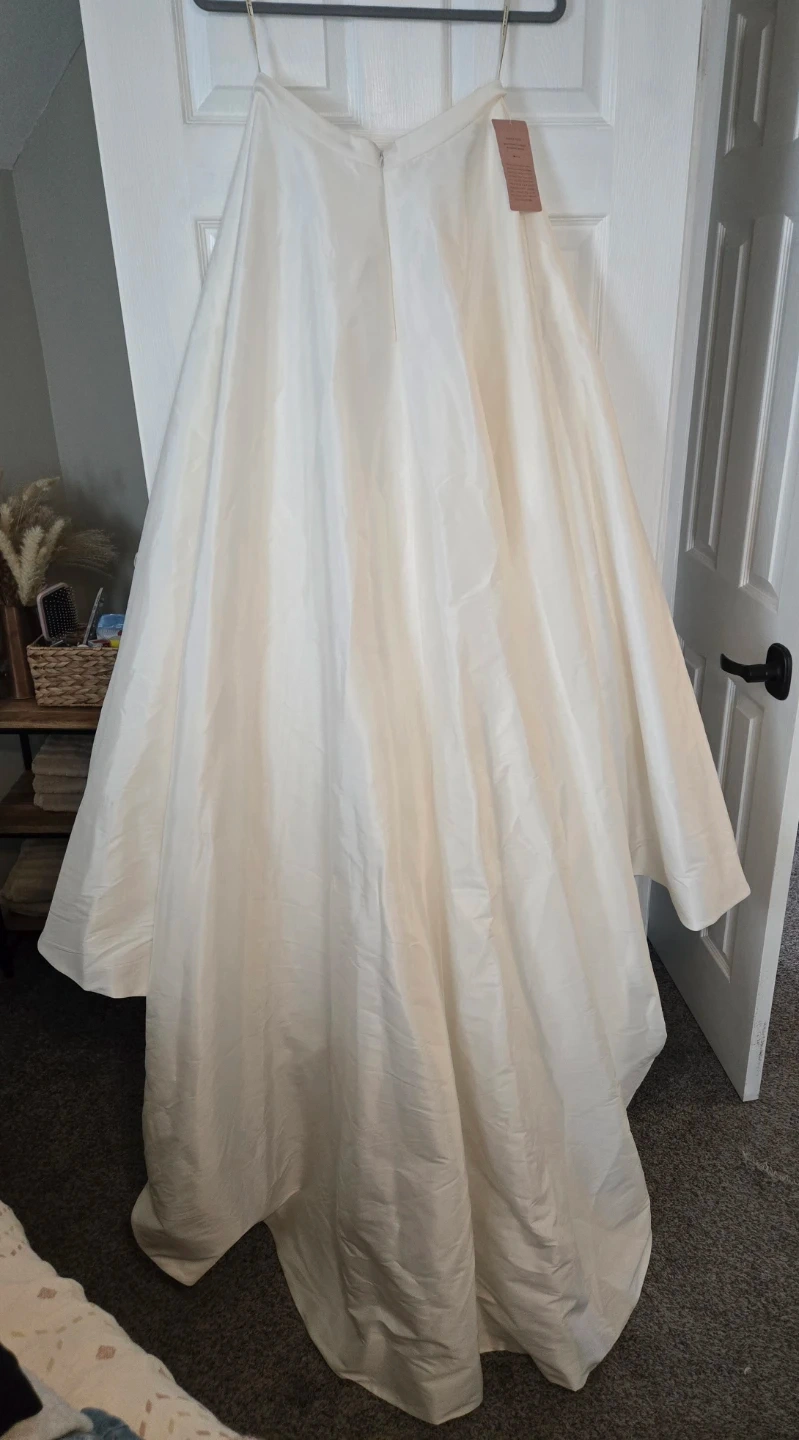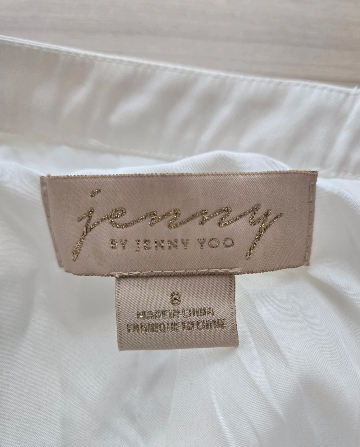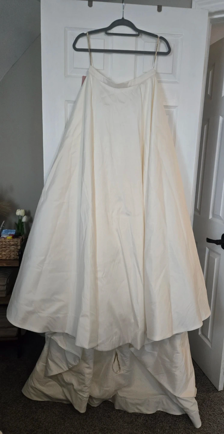 A beautiful satin, ivory wedding dress overskirt from Jenny Yoo. It's a wedding dress size 8. Never worn, still with tags.