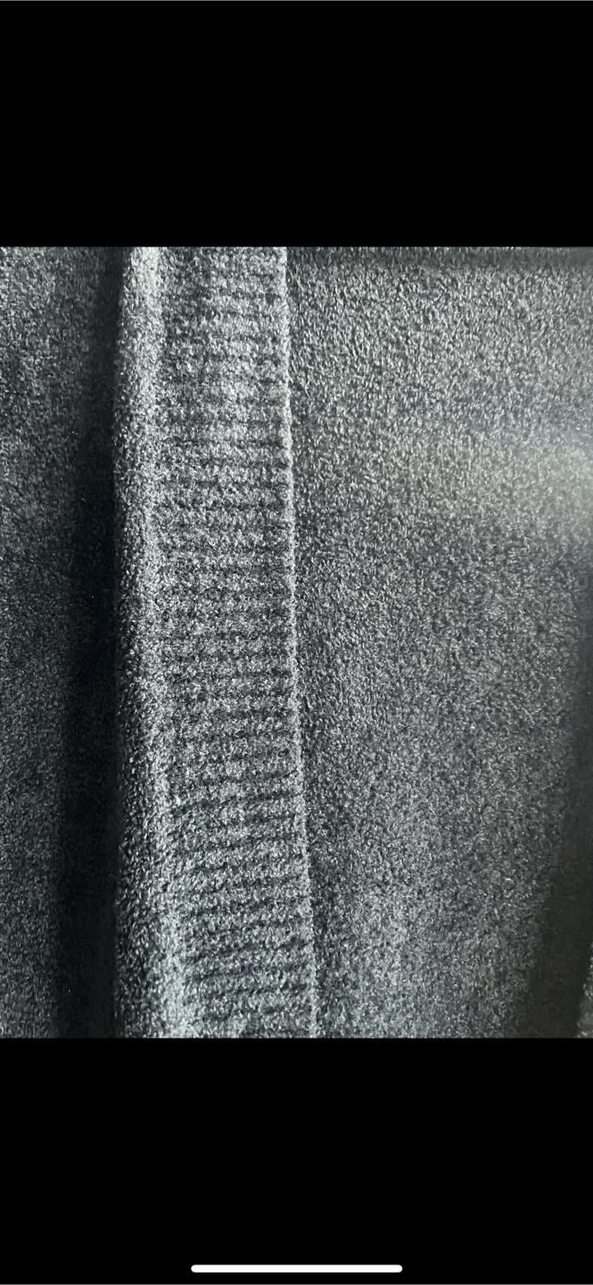 Cozy charcoal grey cardigan from Lauren Hansen. It features button closures and a soft texture. Dry clean or hand wash cold, separately. Do not bleach. Do not twist.