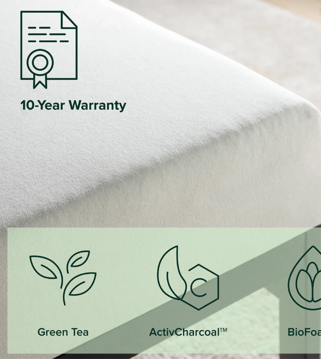 Twin Mattress with Green Tea Infusion and 10-Year Warranty