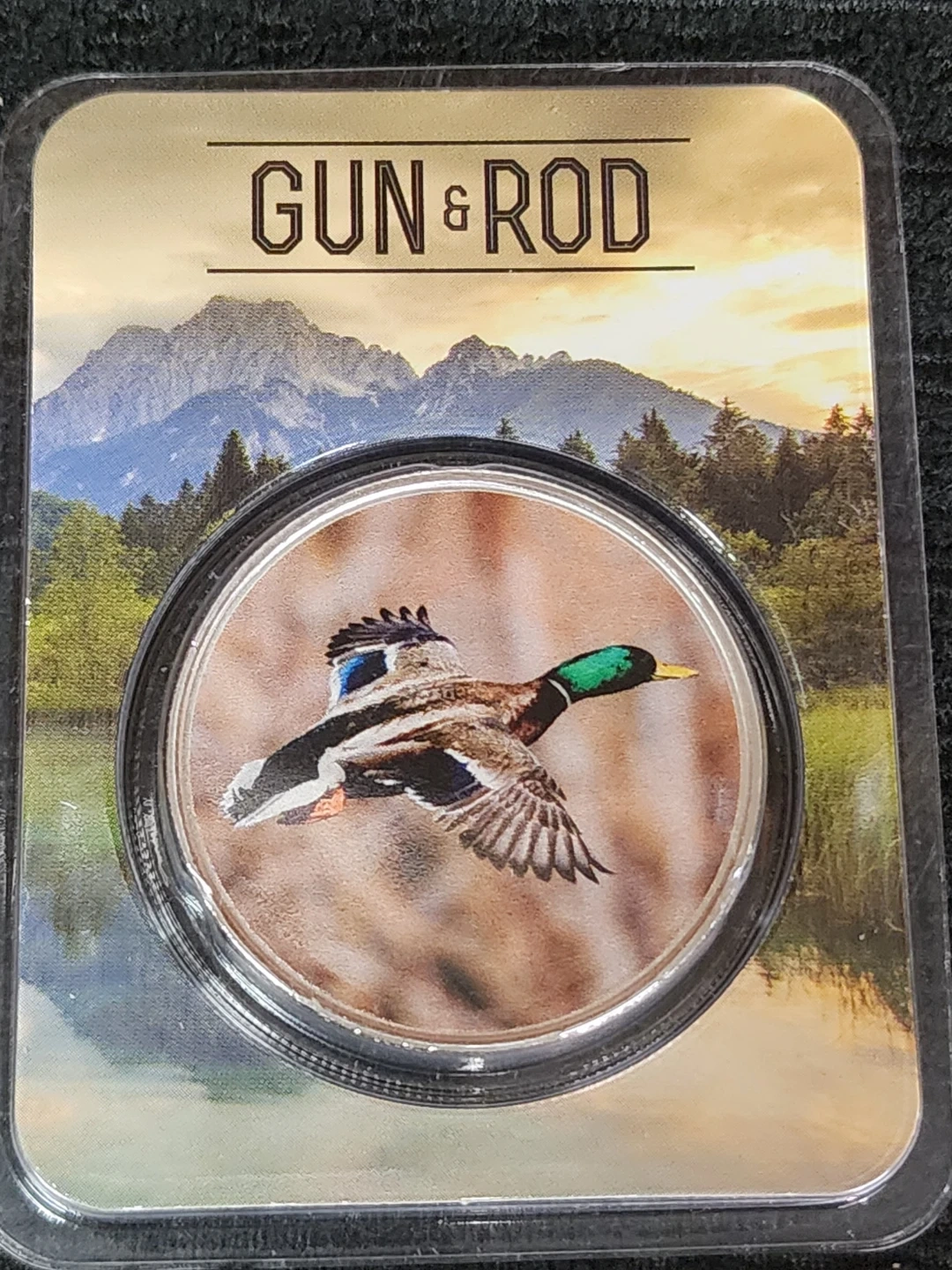 Selling a Gun & Rod .999 fine silver coin! It's in great condition and comes in its original packaging. Features a detailed design with a duck, deer, and rifle. A unique piece for collectors!