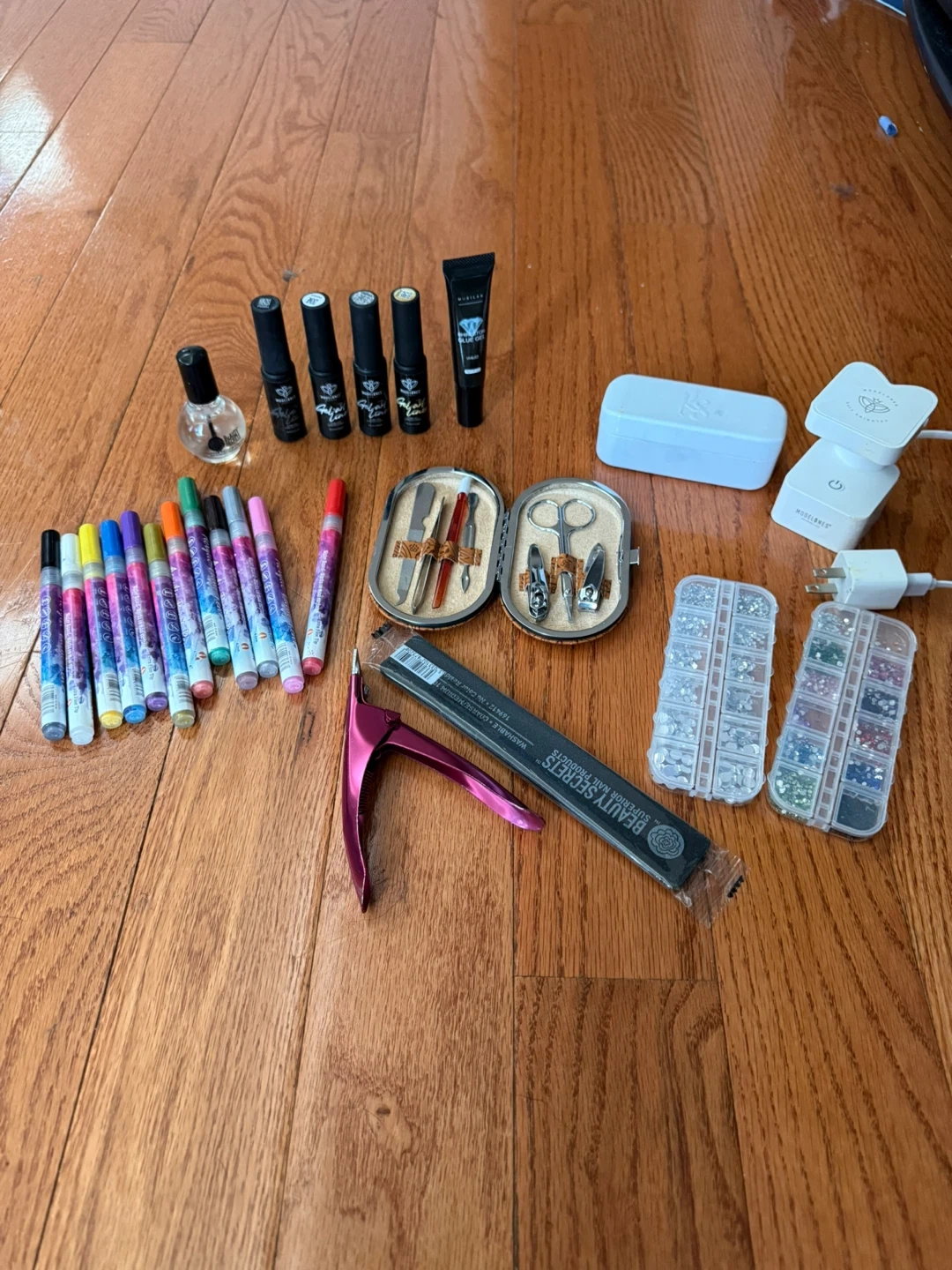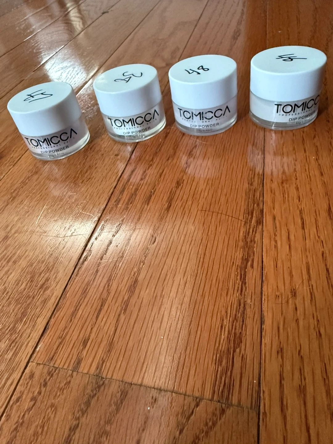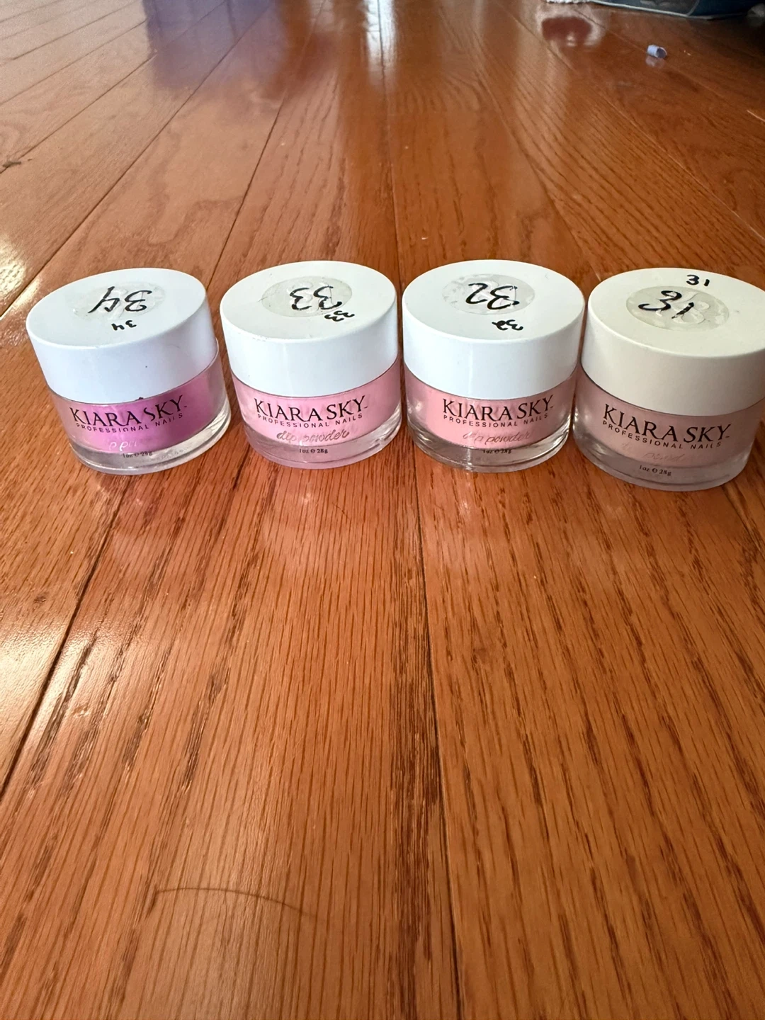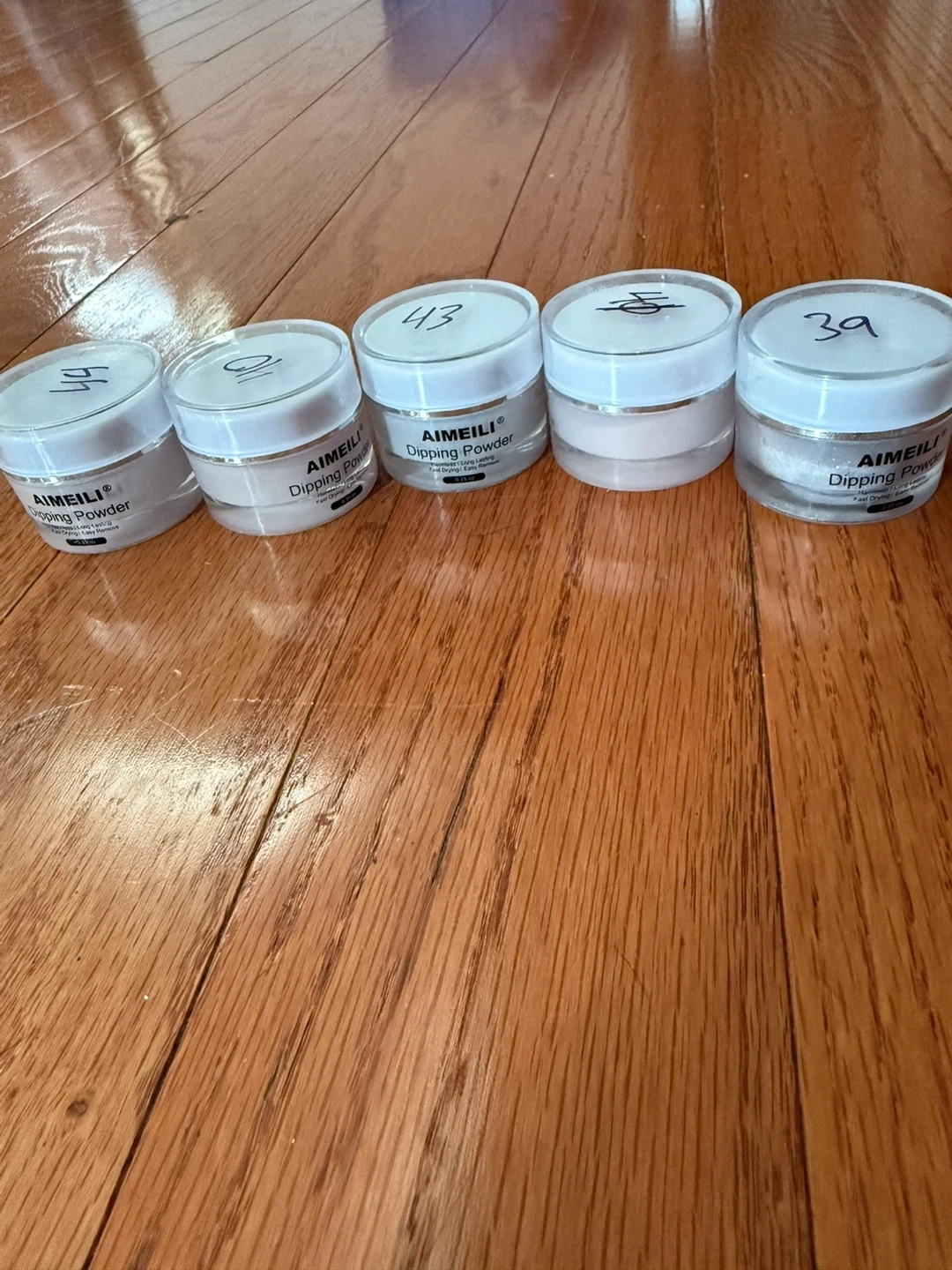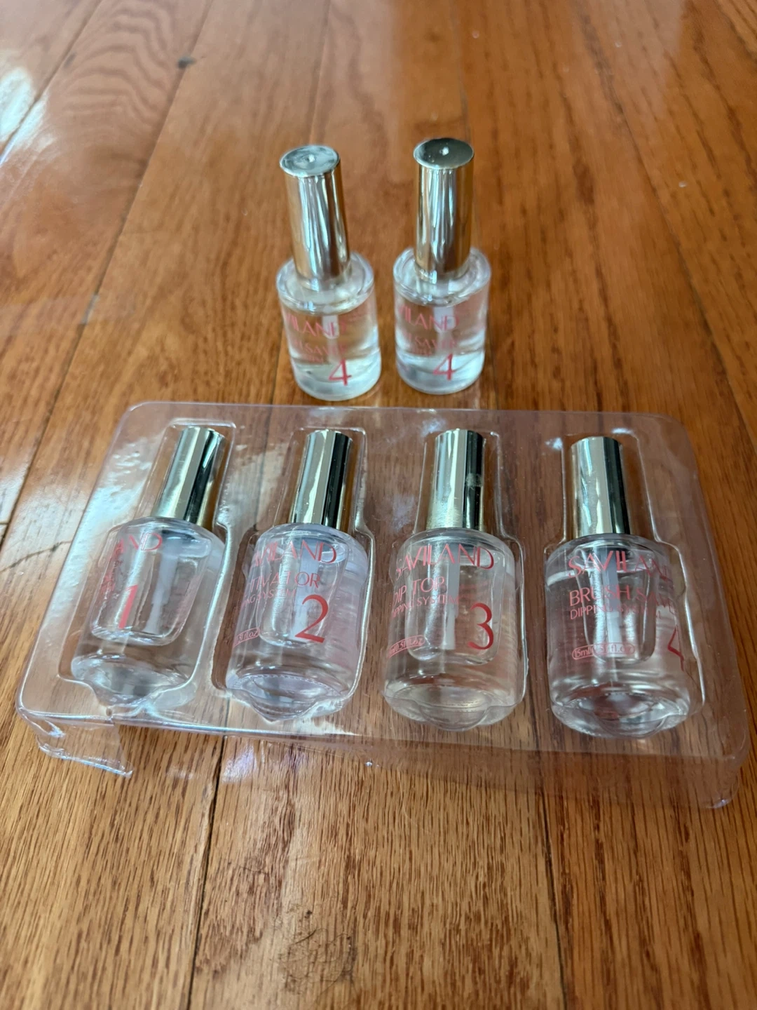 A full set of good quality dip powder liquid - dip base, activator, top coat and brush cleaner - added in 2 extra bottles of unused brush cleaner.