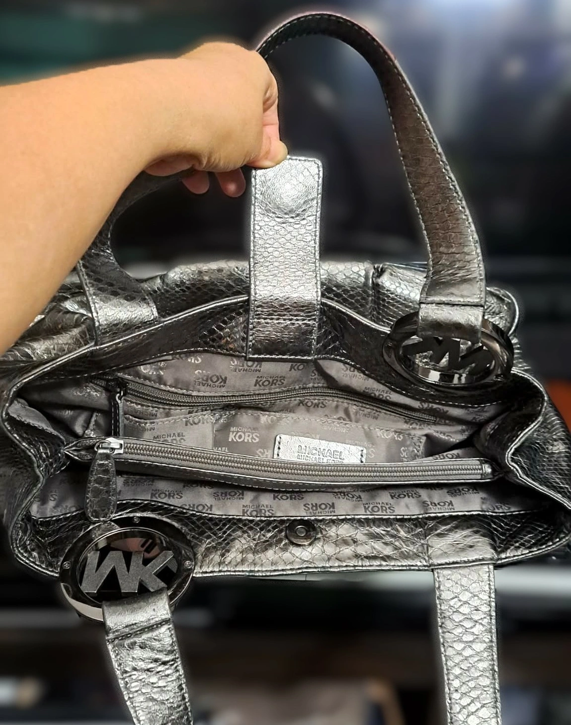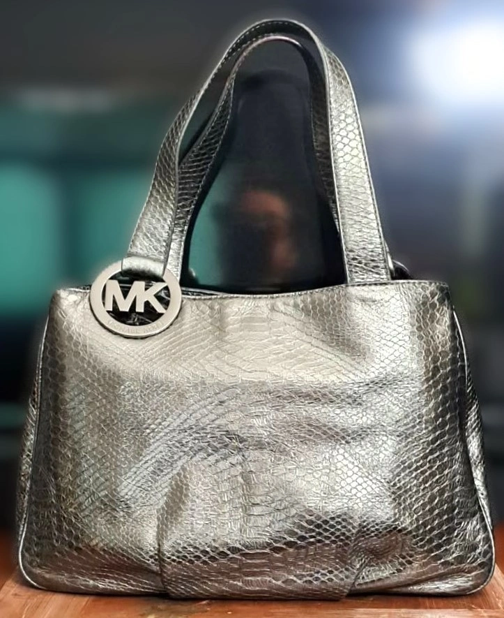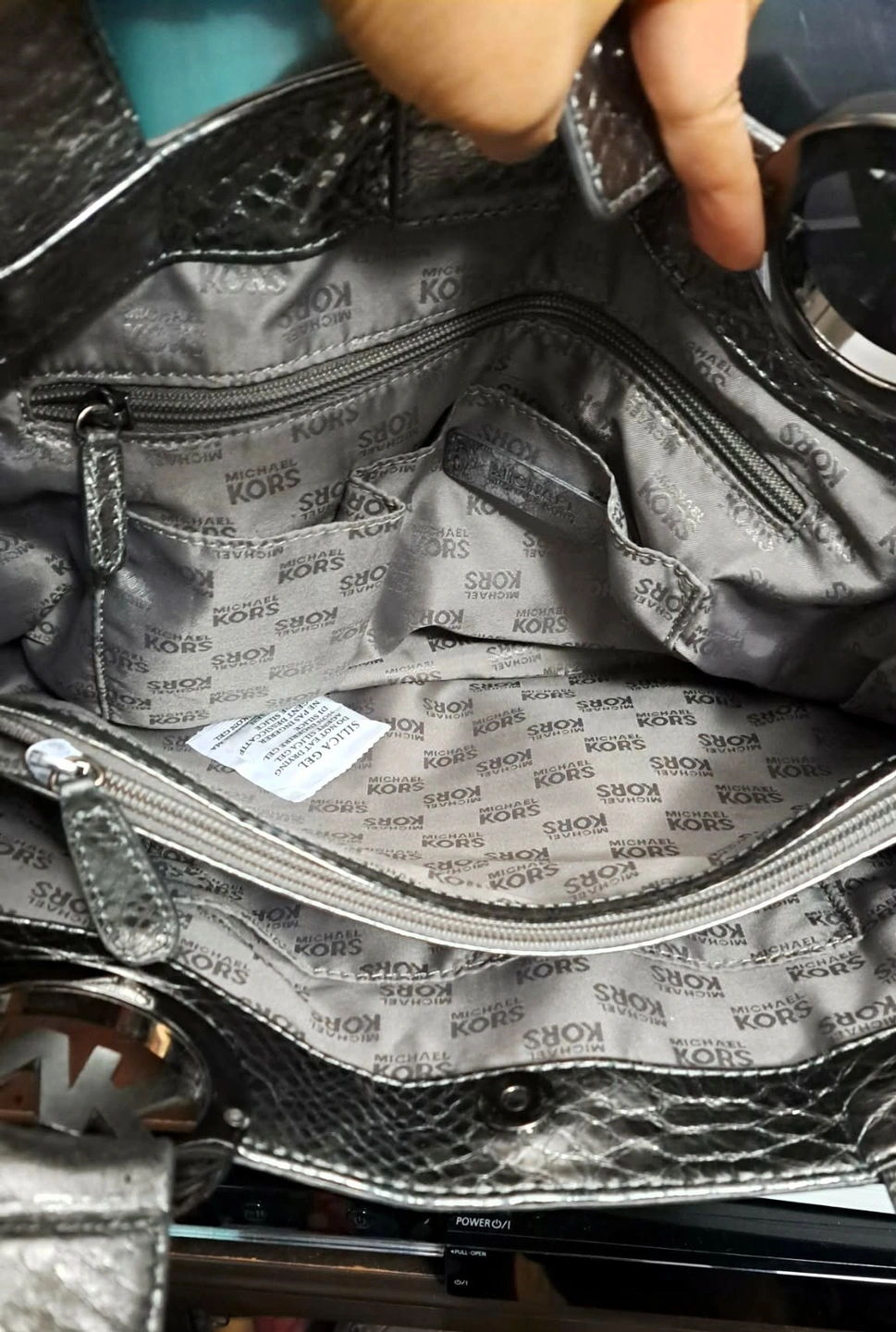 Michael Kors Lrg Tote Metallic Silver Python Embossed Like New🏆
