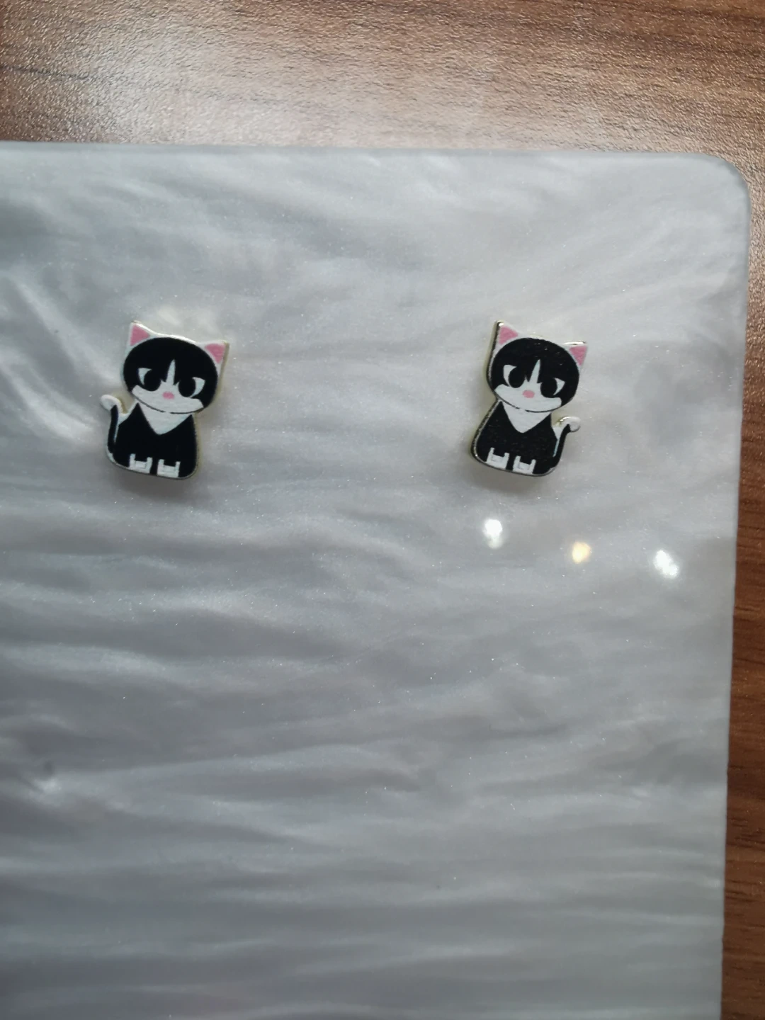 Adorable black and white cat earrings for your collection. These fashion jewelry accessories are perfect for adding a playful touch to any outfit. Lightweight and fun!