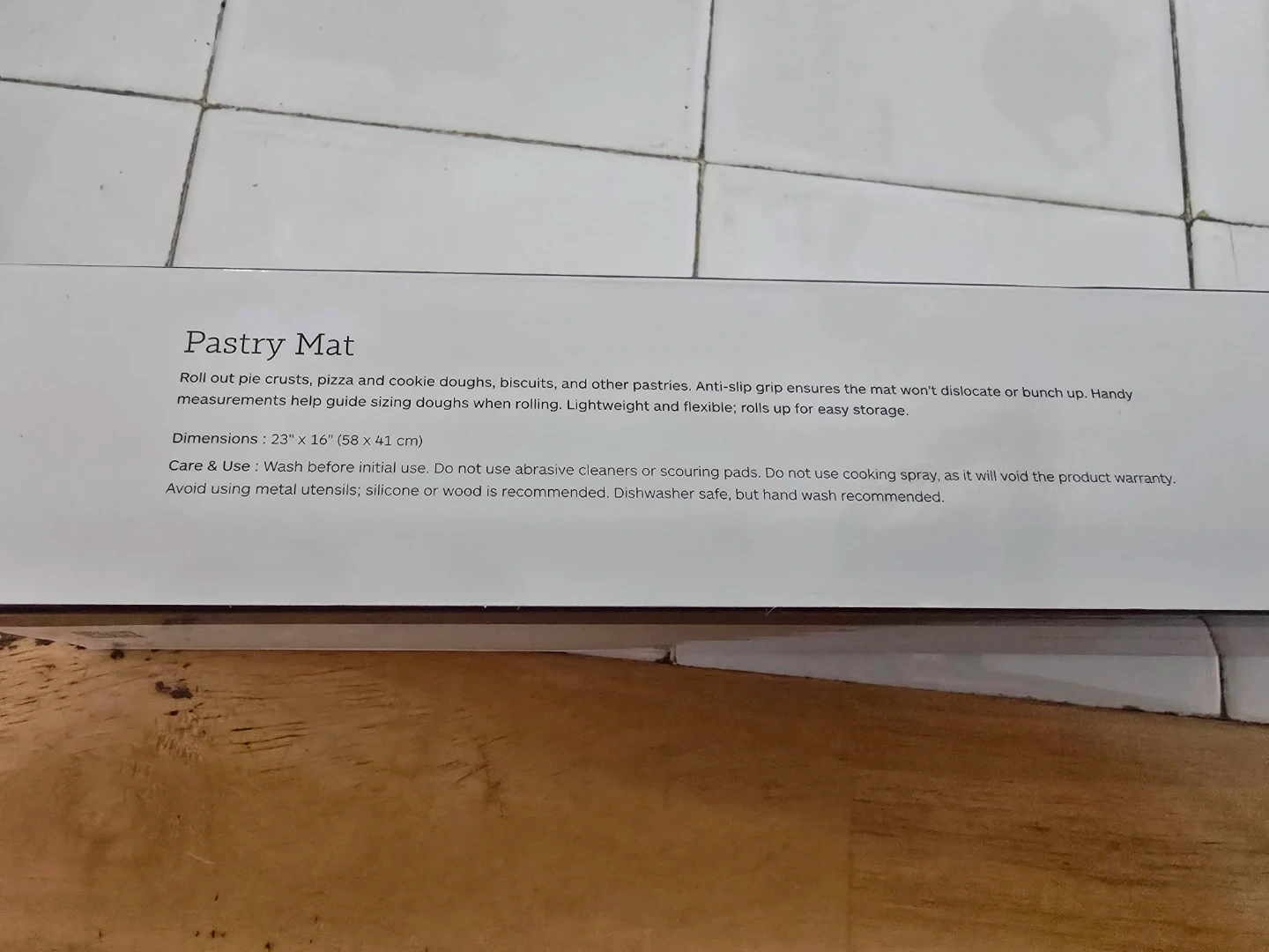 Roll out pie crusts, pizza and cookie doughs, and other pastries. Anti-slip grip ensures the mat won't dislocate or bunch up. Handy measurements help guide sizing doughs when rolling. Lightweight and flexible; rolls up for easy storage. Dimensions: 23" x 16" (58 x 41 cm).