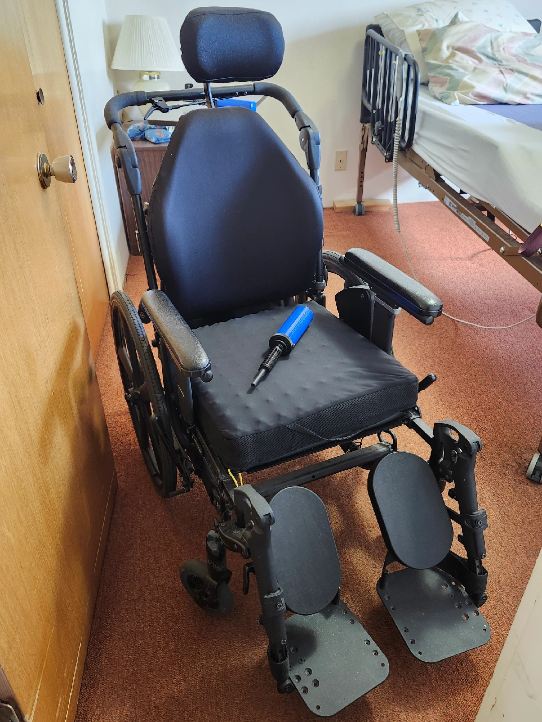15Purchased price over $6000 3 years, Gently used FuzeT50 Manual Tilt, 19"W X 18"D X 15" Standard Base and Seat Frame Transit Tie Down Systerm Solid Aluminum Seat Pan Armrests Single Post Height Adjustable (10"-14") w Full Length Arm Pads 2"x14" Casters - 6" x 1.25" Composite Rear Urethane Wheels 22" Wheel Locks, Rear Anti-Tippers Height Adjustable Push Bar Handle Back Options - 90° Seat to Back Angle Foot Plates - Aluminum Angle Adjustable w/ Length Adjustable Heel Loops & STD Extension Tubes. Roho Cushion High Profile 18"W X 18"D Backrest Nxt Xtend 18"W, 16-20"H Positioning Belt - Reg. 2pt Seat Belt Headrest Whitmyet Linx 10" Plush Pad Legrest Panel Padded 18"