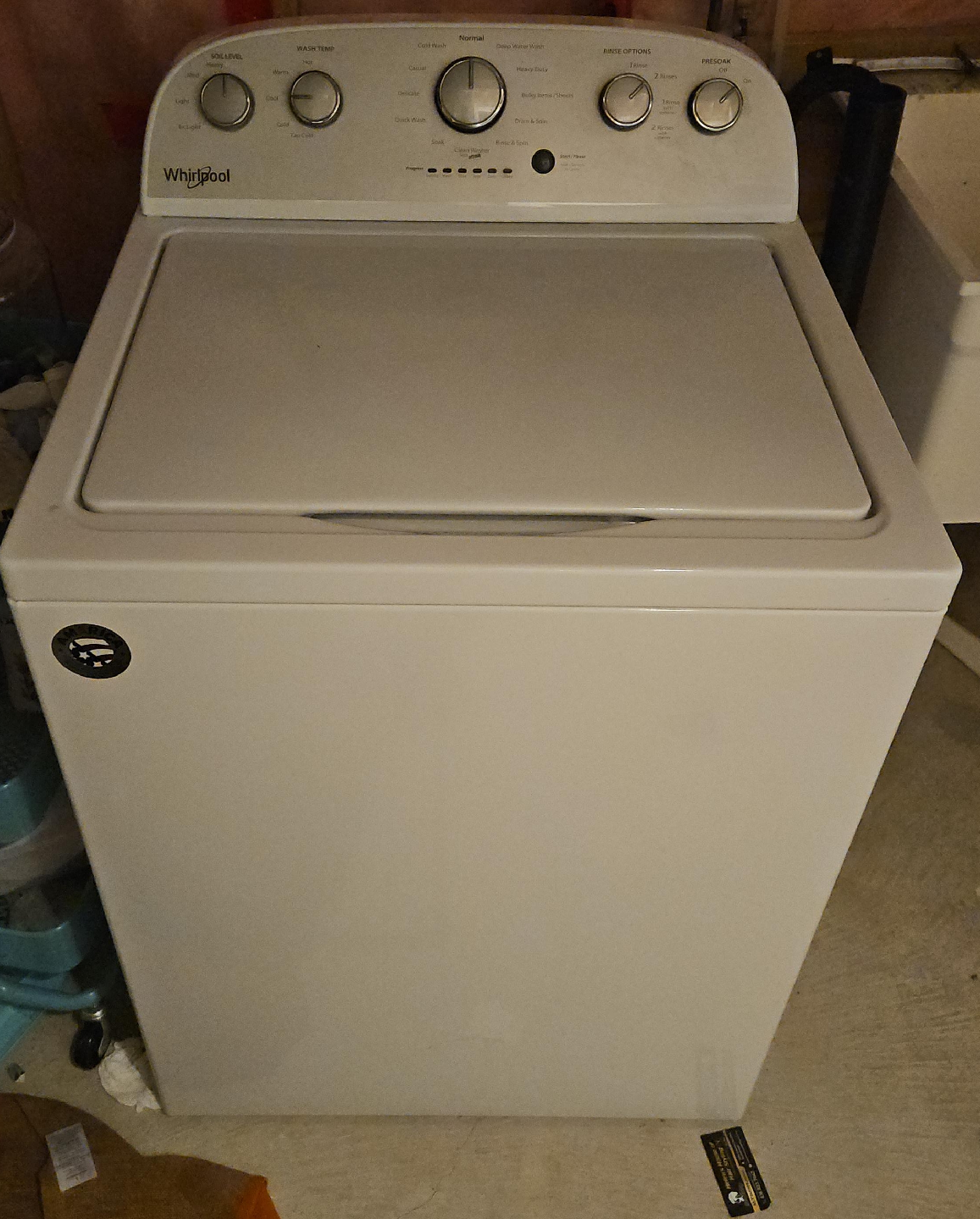 Selling a Whirlpool top load washing machine. It features multiple wash cycles including normal, delicates, and quick wash. There are also options for deep water wash and presoak