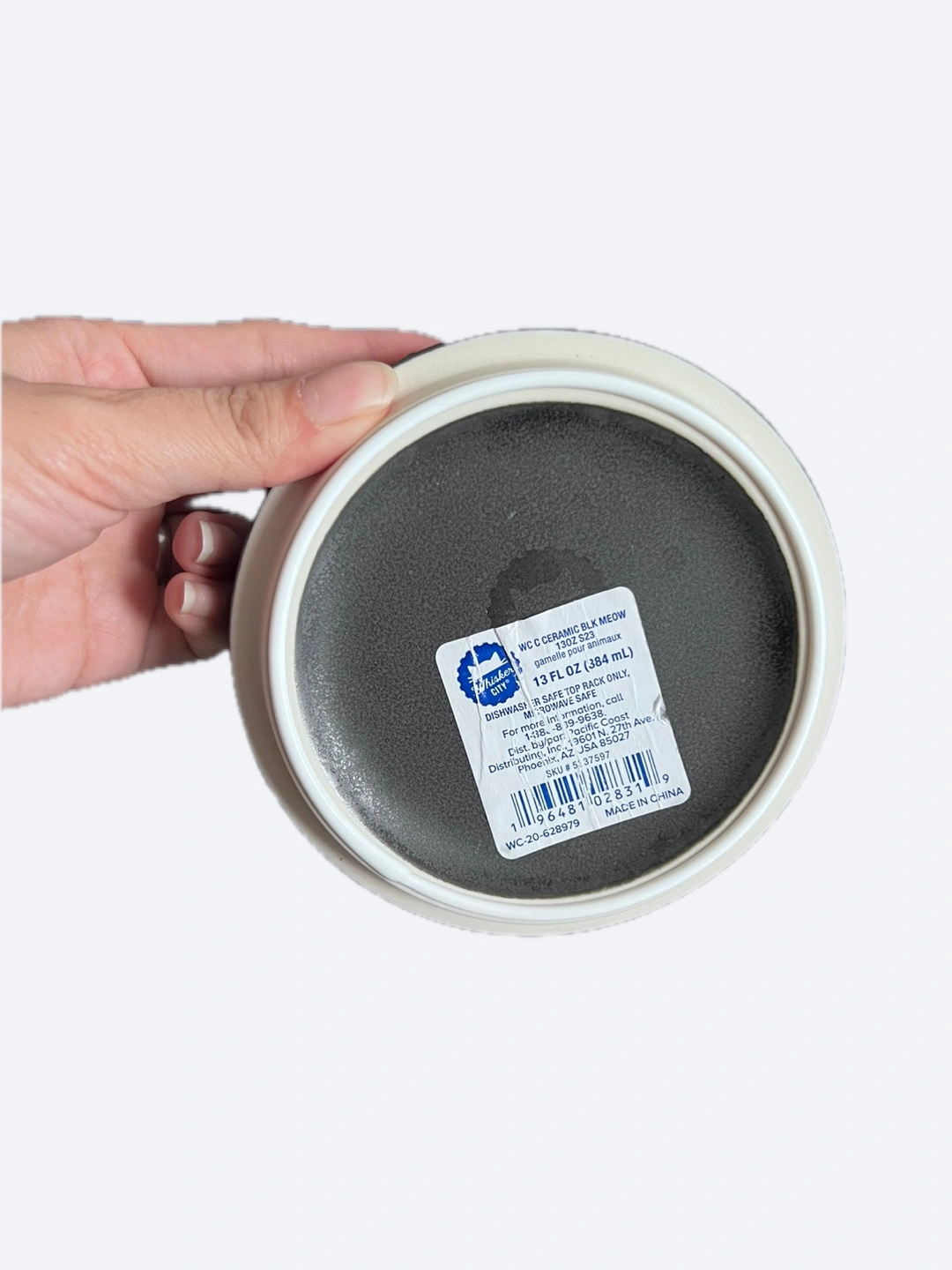94Used only for a week. Adorable cat-shaped silicone mat. Two ceramic bowls included. One beige, one dark grey. 'Meow' embossed on bowls. Microwave and dishwasher safe.