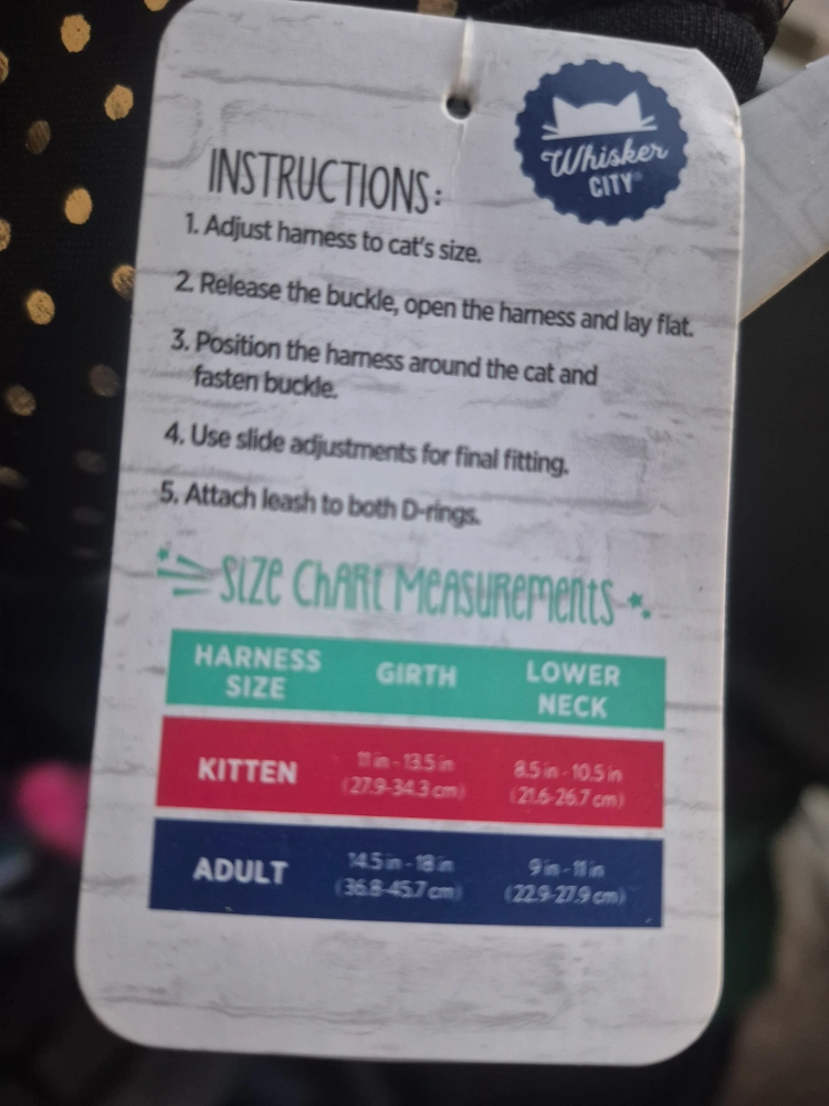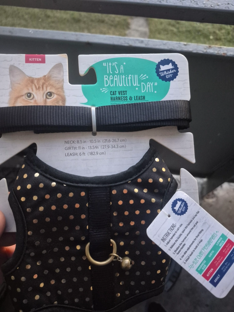 Selling a brand new Whiskers City cat vest harness and leash set! It's a kitten size, perfect for your little feline friend. The set includes a 6 ft leash. It's a beautiful day to take your cat for a walk!
