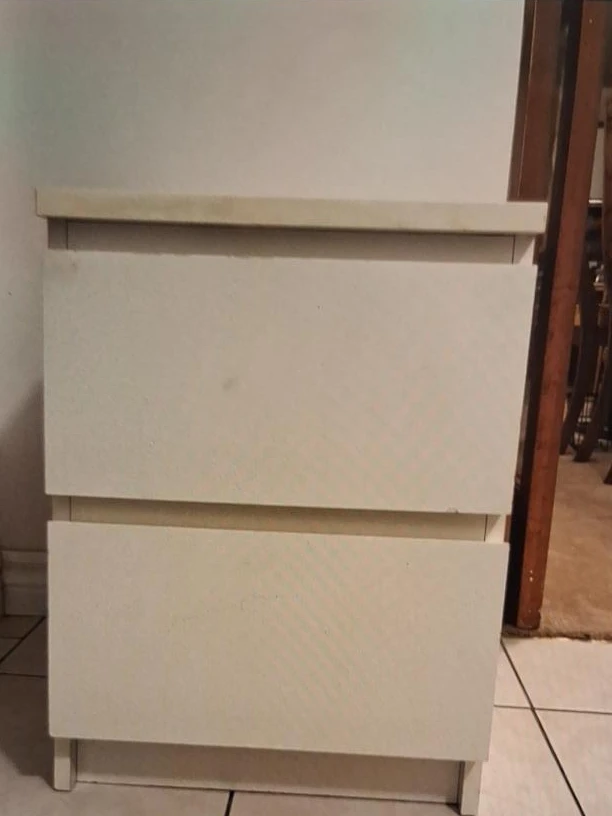 10Selling a simple, white two-drawer dresser. It's in good condition and perfect for extra storage in a bedroom or living area