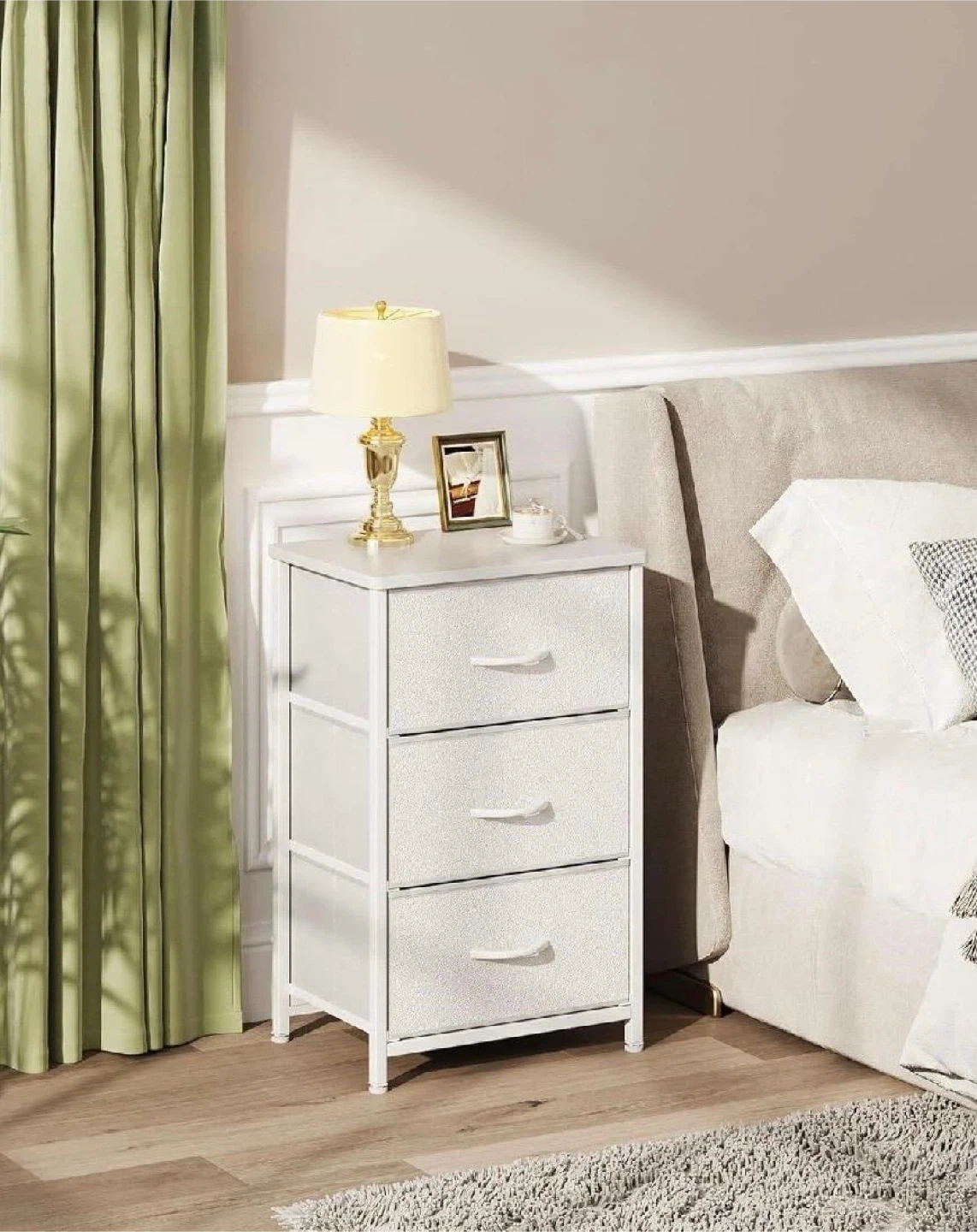 Looking to sell a white 3-drawer dresser! It's perfect for adding some extra storage to your bedroom or any other space in your home. The drawers are made of fabric, giving it a nice, soft look! Box packed