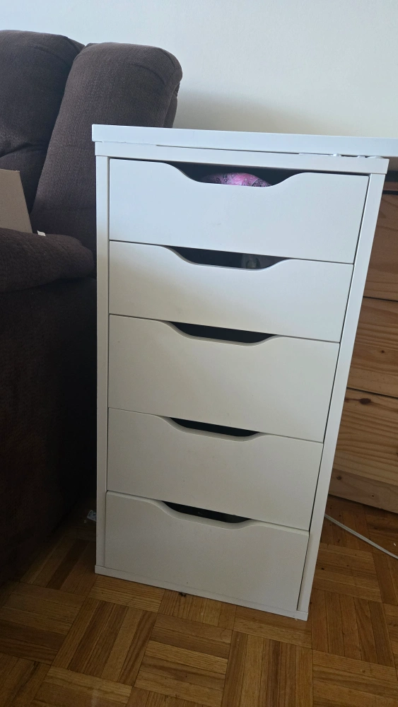 16Selling a white dresser with five drawers. It's in good condition and perfect for adding extra storage to any room Ikea Alex 5 drawers white