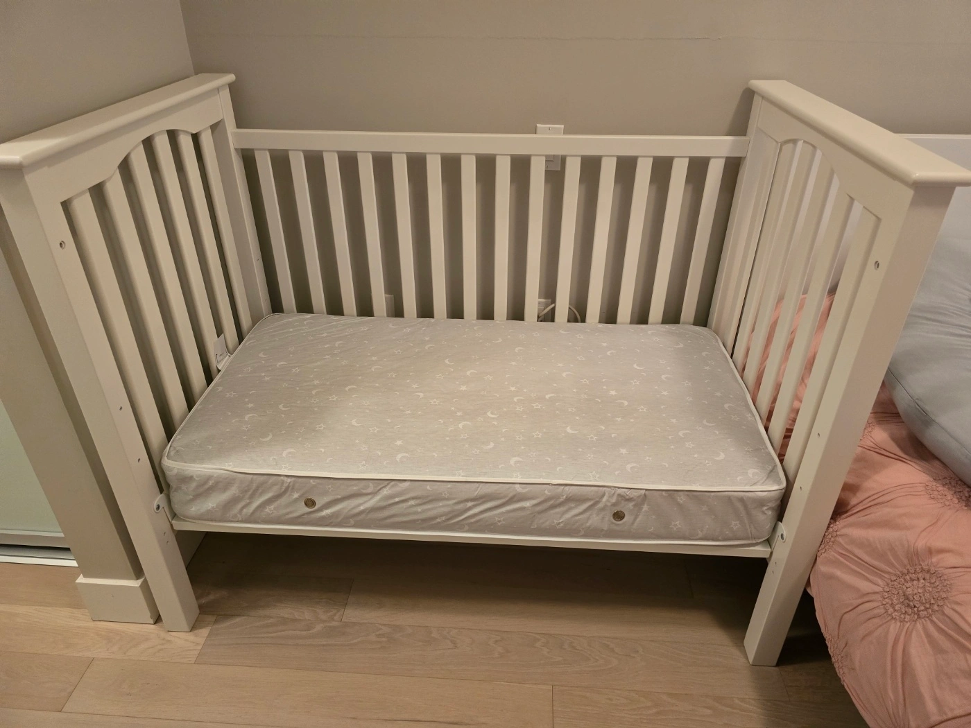 Selling a gently used white baby crib. It's in great condition and ready for a new home. Perfect for your little one's nursery!
