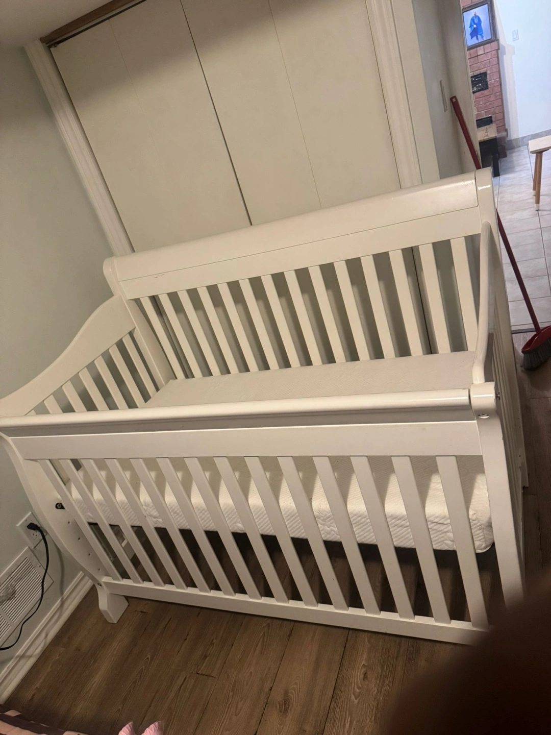 0Selling a white baby crib. It's in good condition and ready for a new home. Perfect for your little one's nursery!