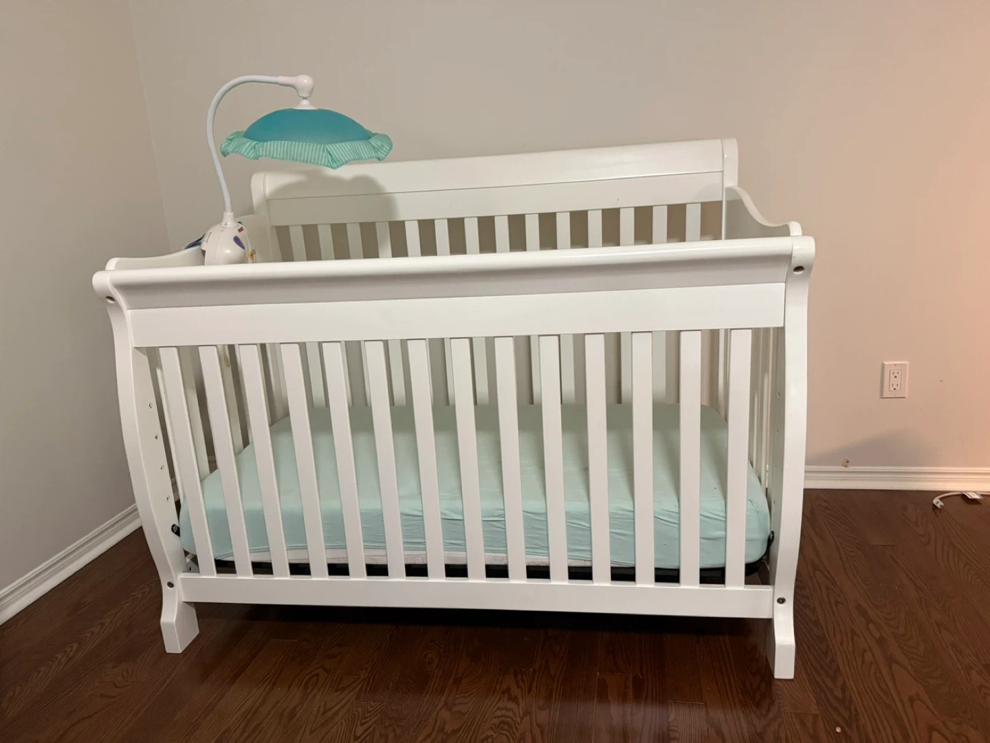 10Selling a gently used white baby crib! It comes with a mattress, so it's all ready for your little one. It's in great condition and would be a lovely addition to any nursery. Free mattress cover, bed sheets and hanging projector toy.