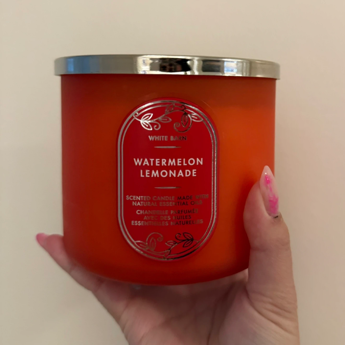 23Selling a Bath & Body Works White Barn Watermelon Lemonade candle! It's a scented candle made with natural essential oils. Perfect for adding a refreshing scent to your home!