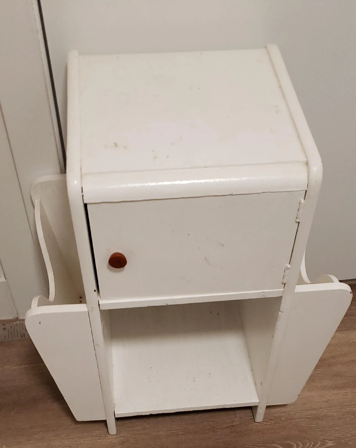 138Selling a cute white bedside table! It has a little cabinet with a door and a magazine rack on each side. Perfect for keeping your nighttime reads and essentials close by. e transfer preferably