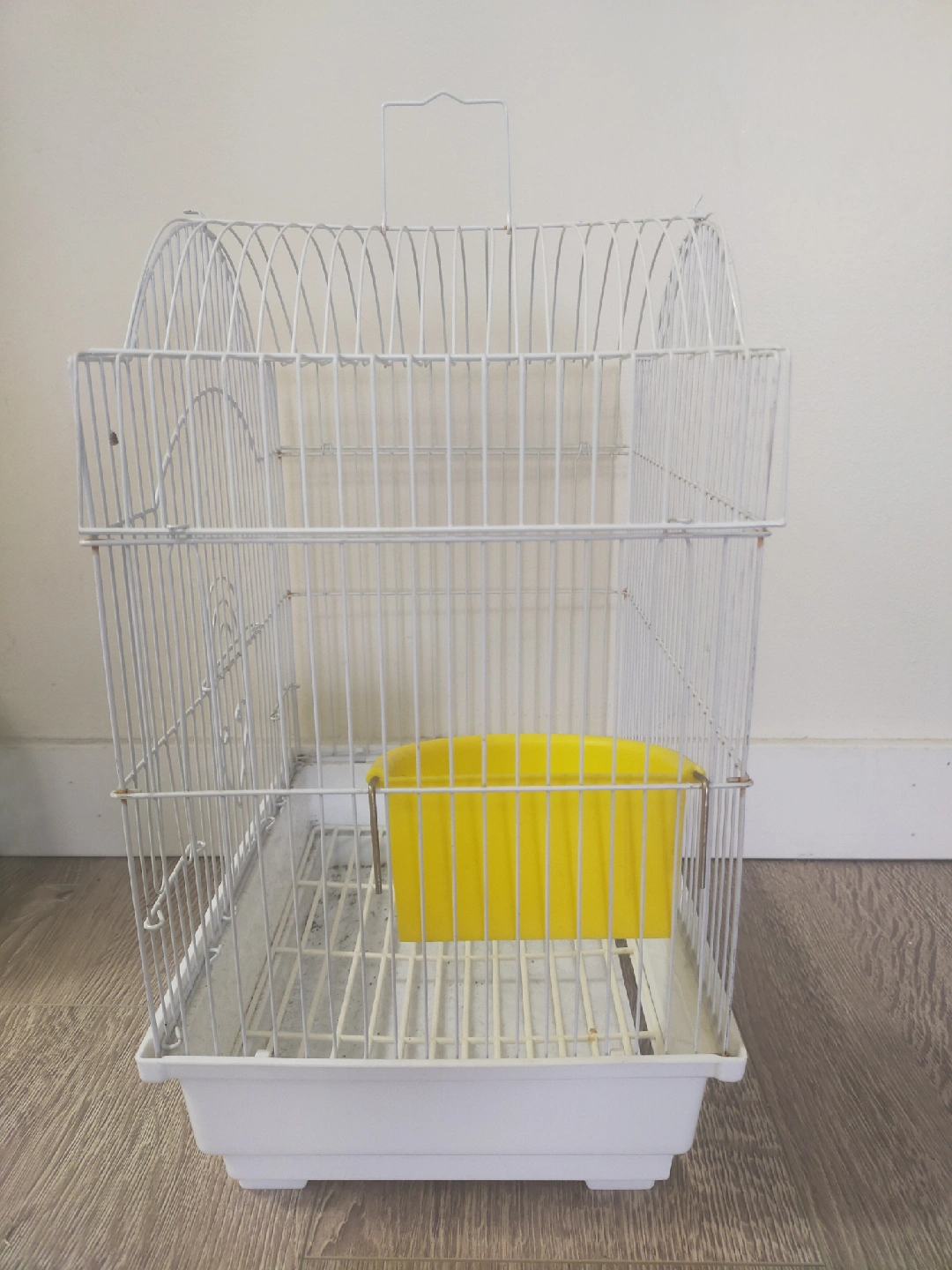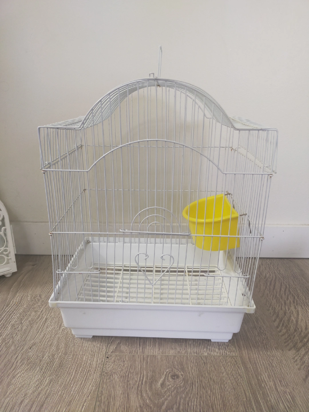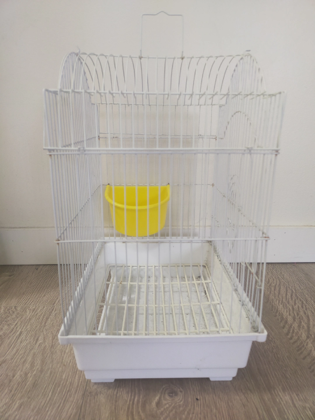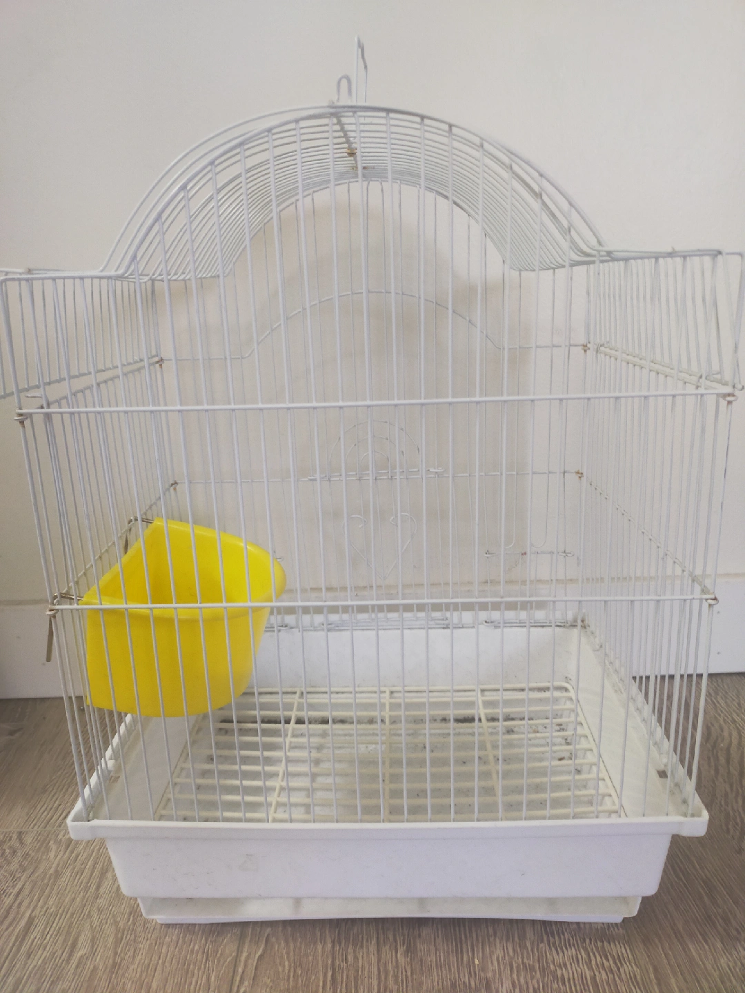Selling a white bird cage that's in good condition! It comes with a yellow feeder. Perfect for small birds. absolutely with no problems ๐ pick up only ๐ซ