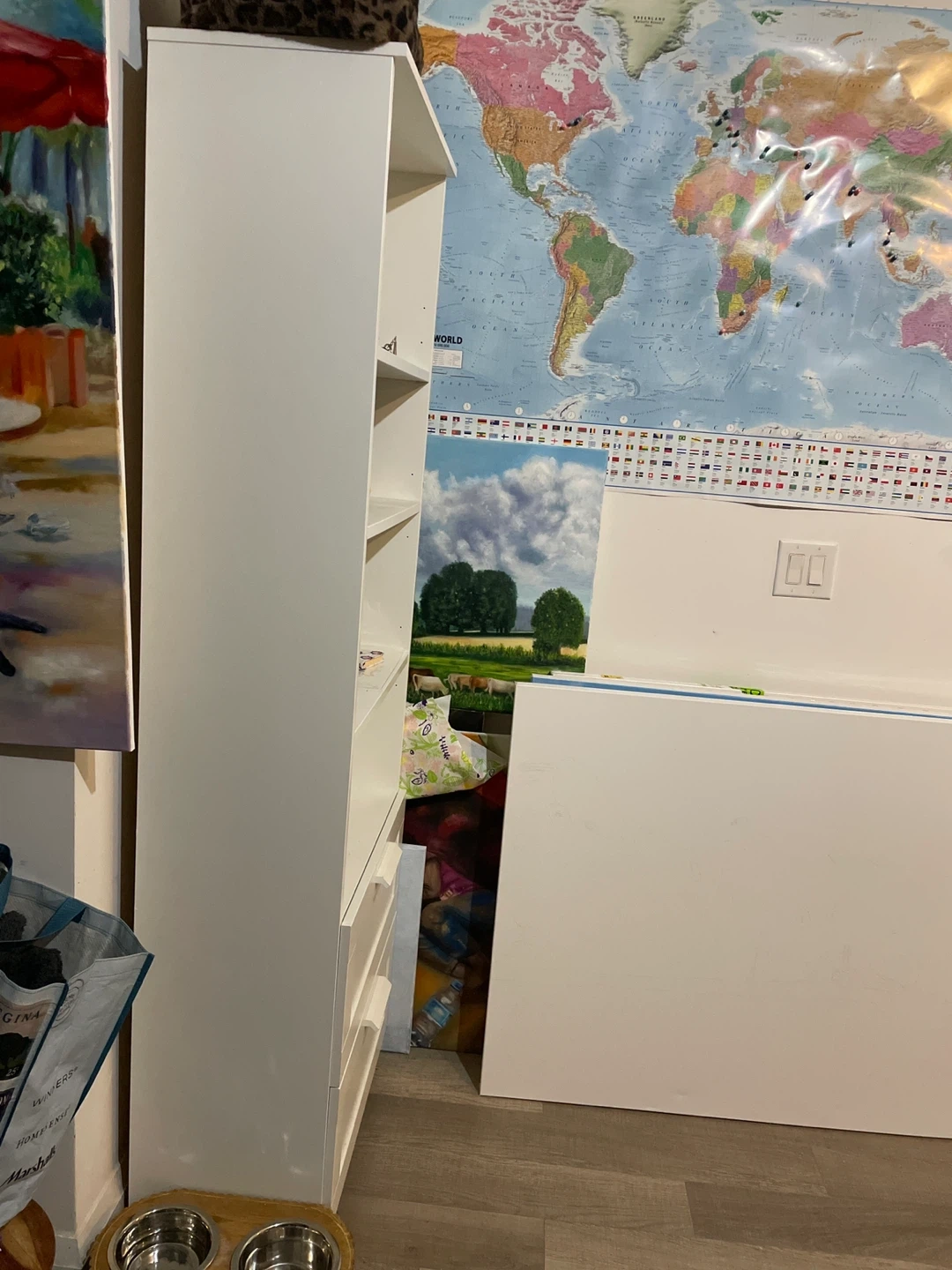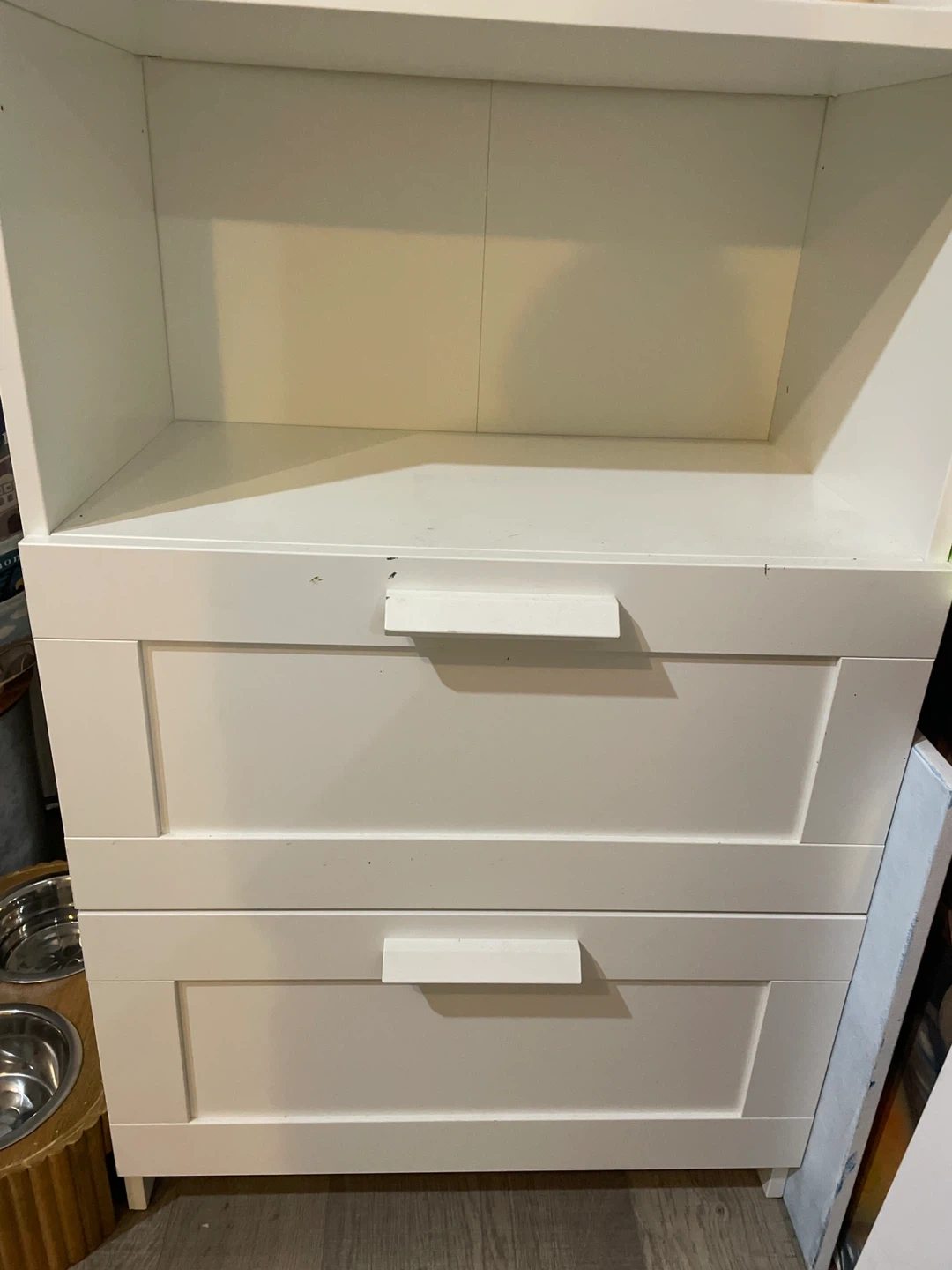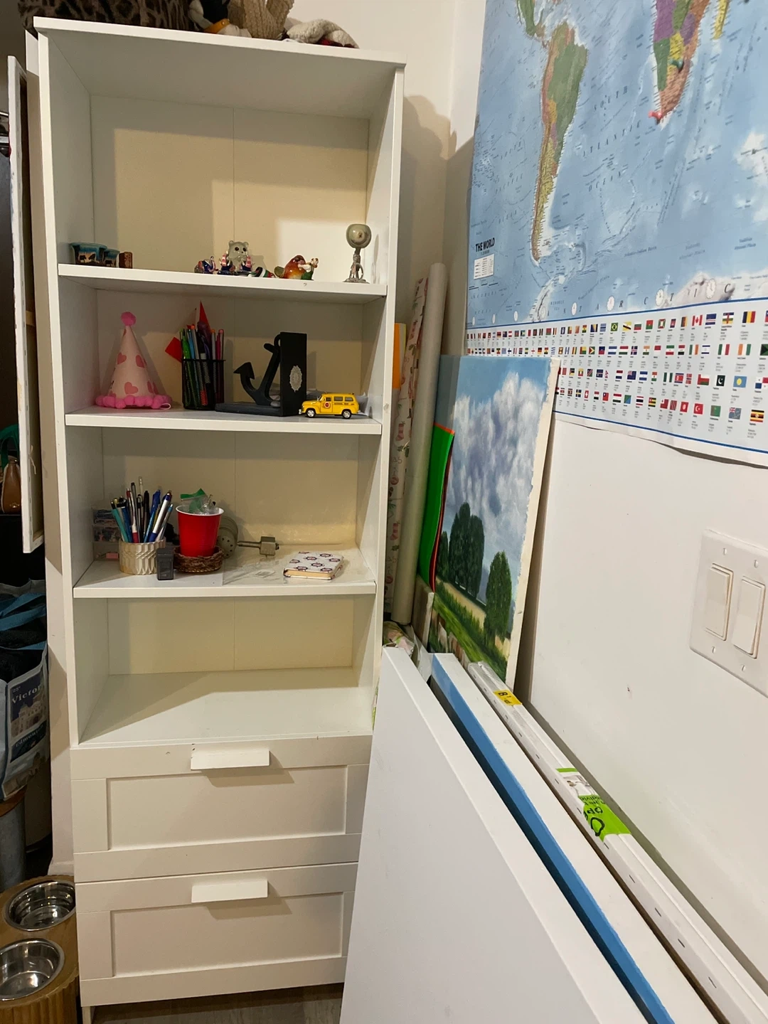 Selling a white bookcase with built-in drawers! It's in great shape and ready to organize your books and other items. Perfect for a bedroom, living room, or home office. It’s in a good condition. The material is wood. Size: 2.5 M*70 CM*30 CM