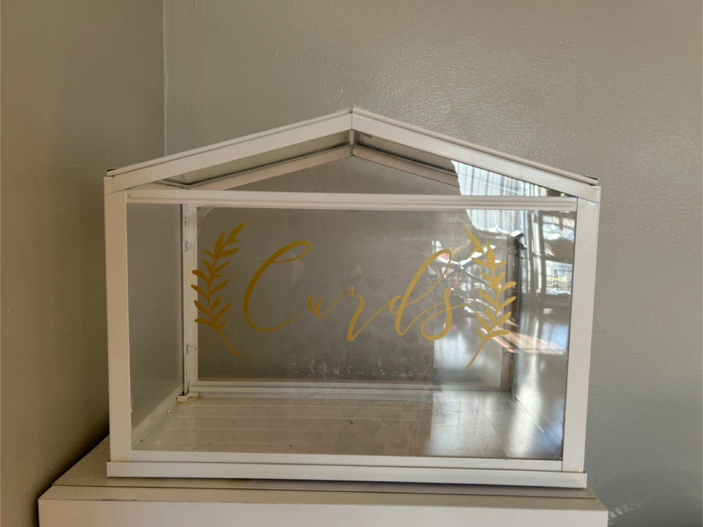 91Selling a cute clear card box with gold lettering! Perfect for weddings, showers, or any special event where you want to collect cards in style. It's in great condition and ready to add a touch of elegance to your celebration.Once used.