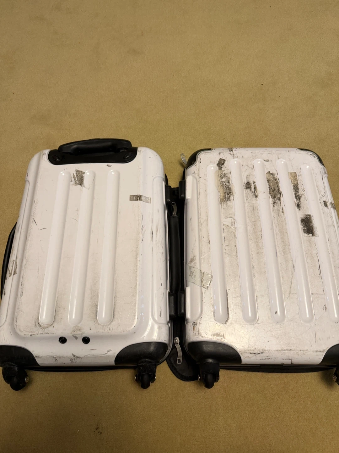 60Selling a carry-on luggage in white. It has some signs of use, but it is still in good condition. Perfect for your next trip!