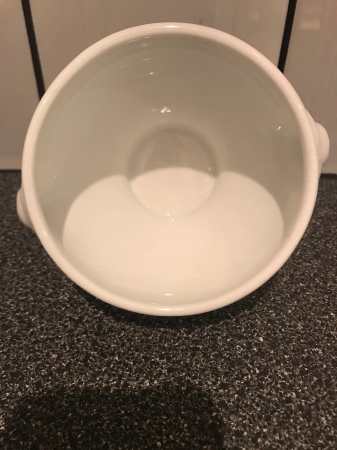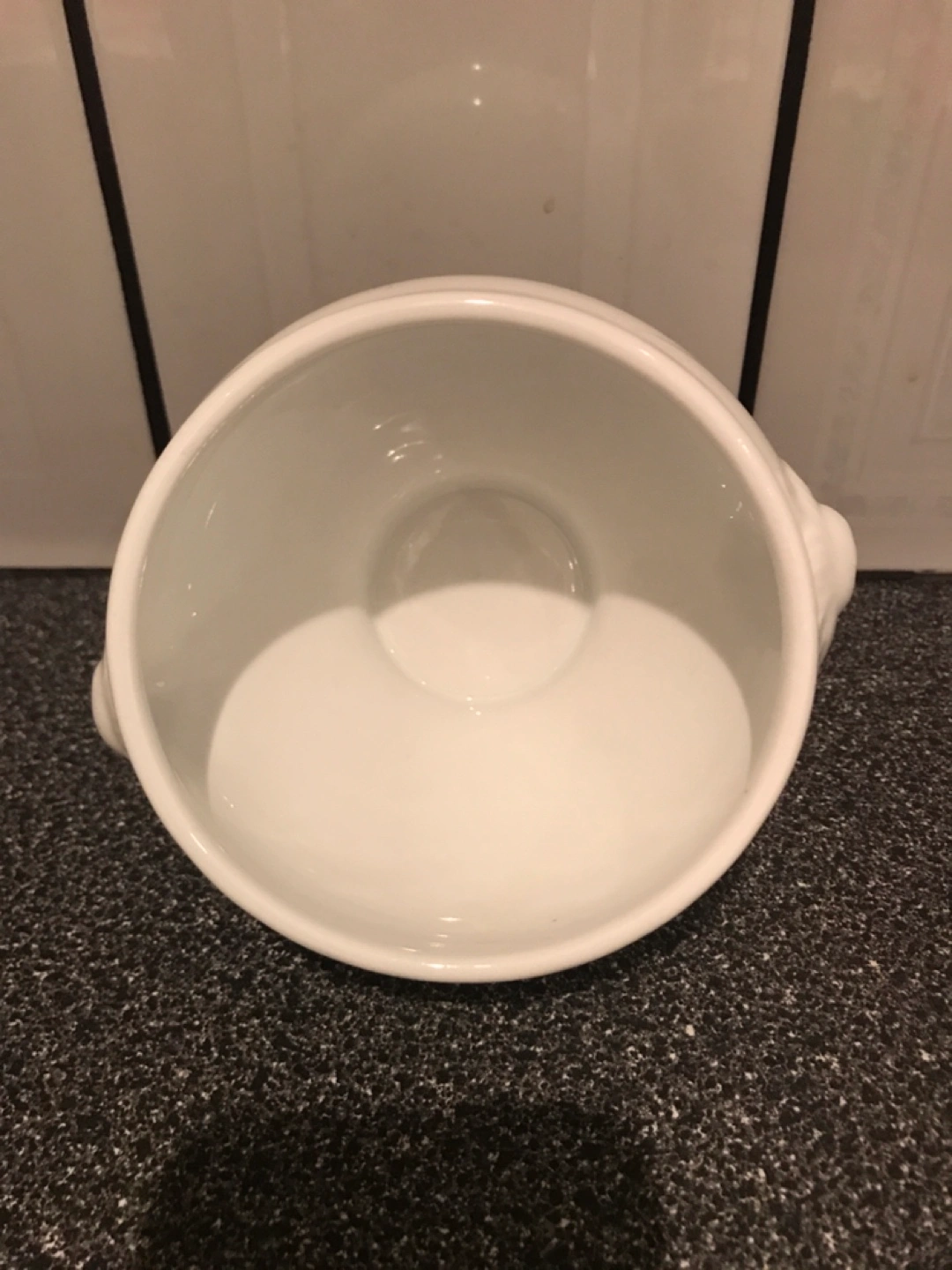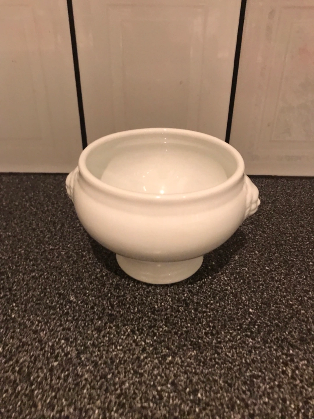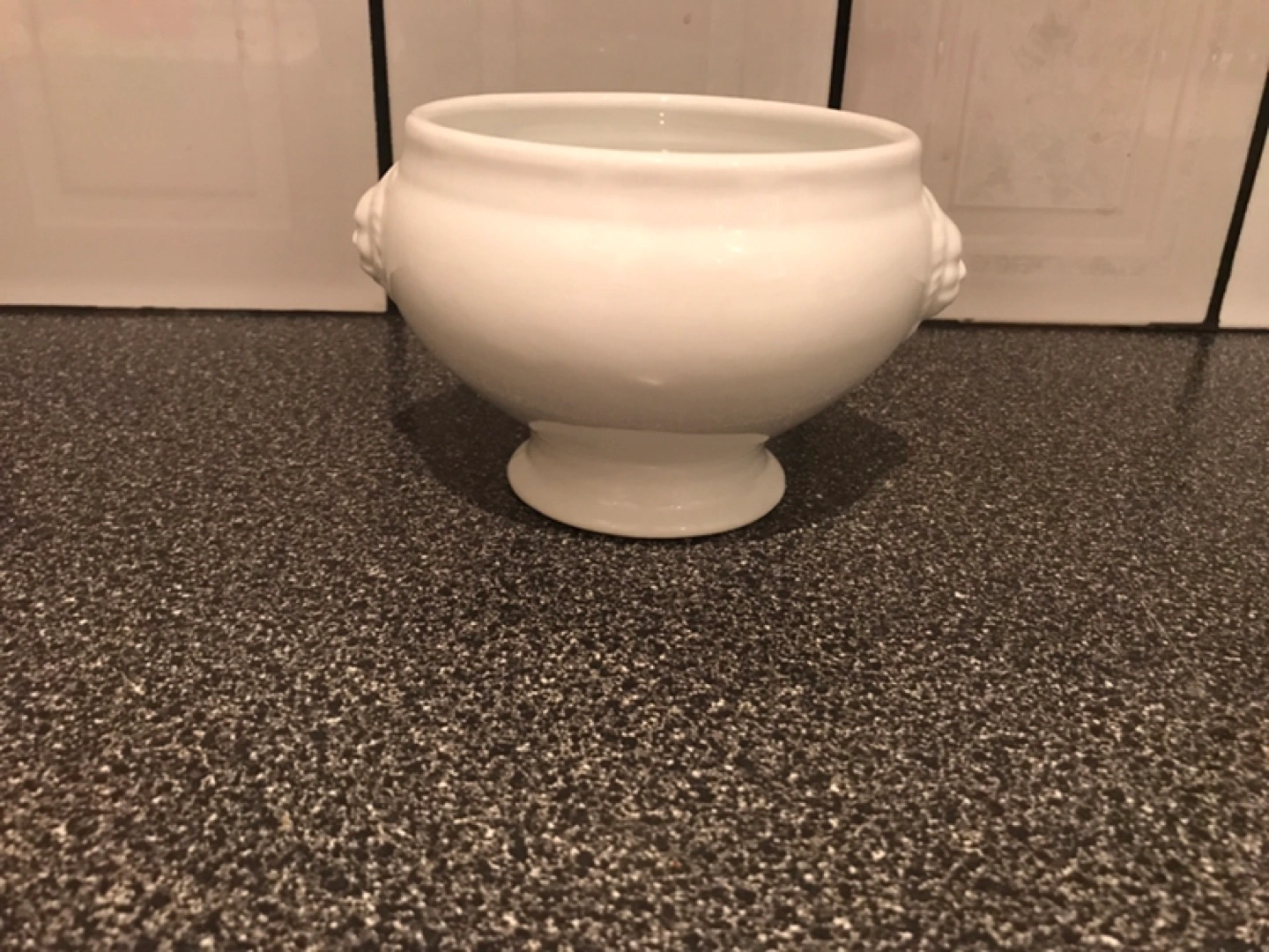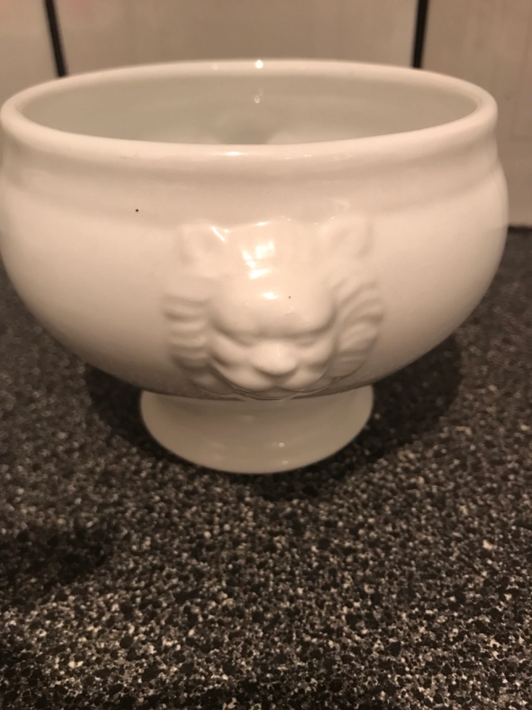 839A charming white ceramic soup bowl featuring lion head details on the sides! It's in great condition and ready to add a touch of elegance to your table setting Pick up location is 10 Alcorn Avenue M4V1E4