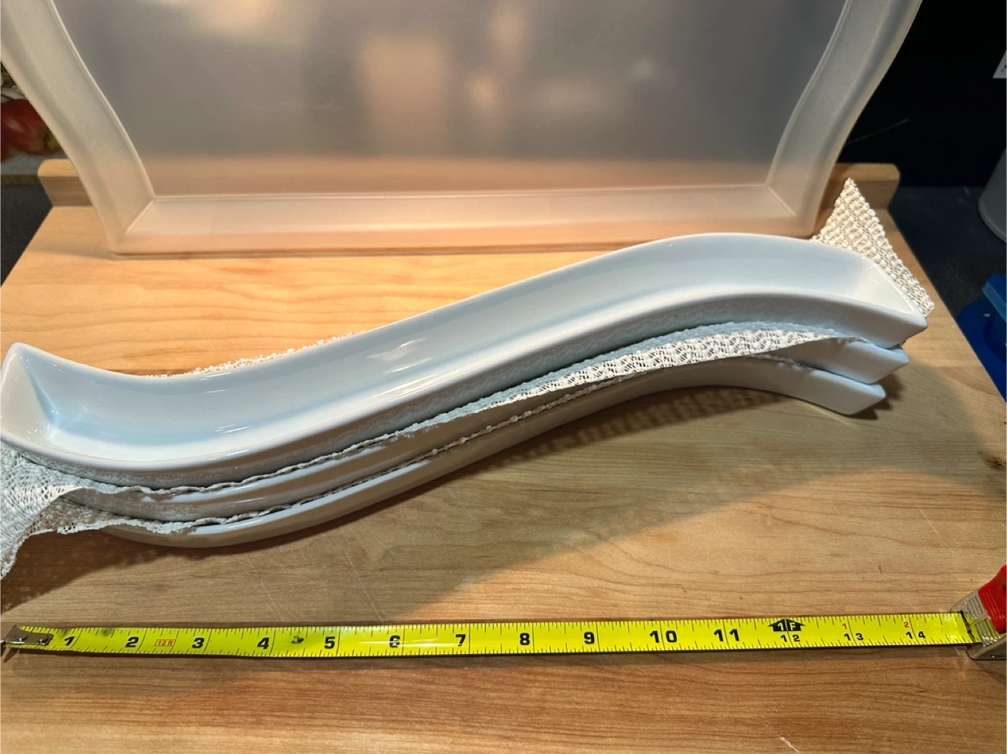 15Selling a set of 3 white ceramic olive or nut dishes. They are in great condition and measure approximately 11 inches in length. Perfect for entertaining!