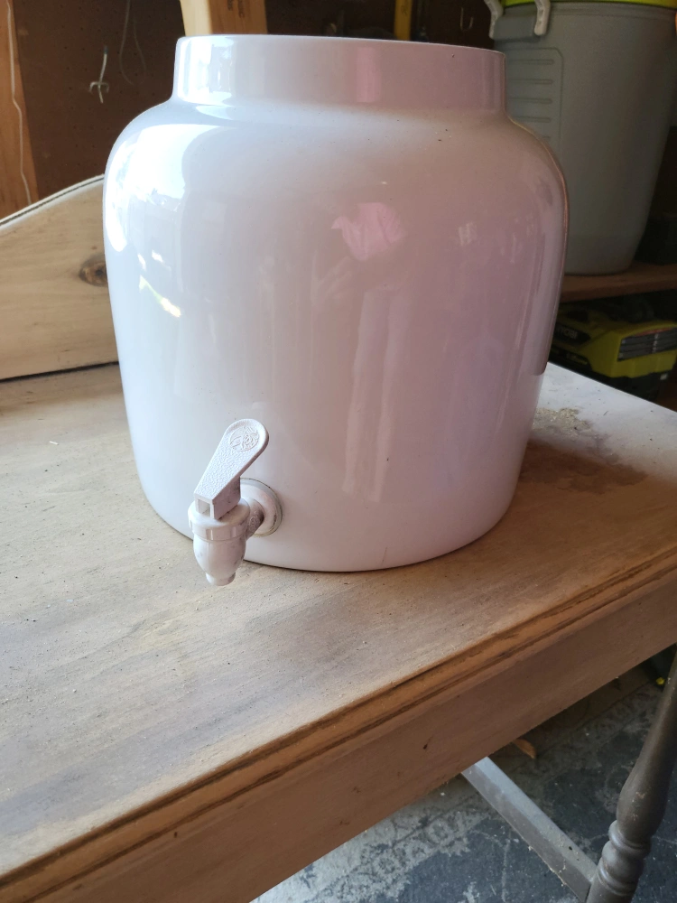 10Selling a white ceramic water dispenser. It's in good condition and ready to use! Perfect for keeping your water cool and easily accessible. It's a great addition to any kitchen or office space