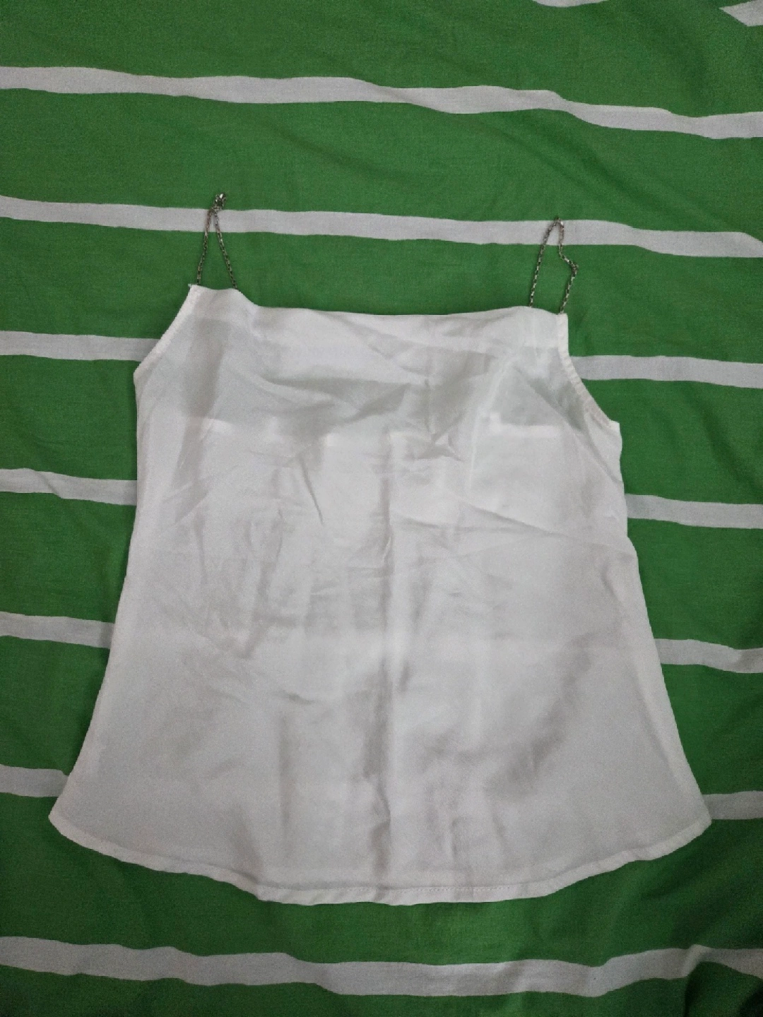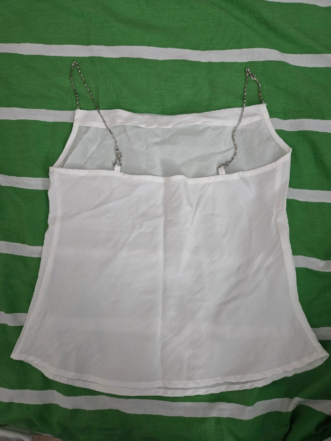Selling a cute white top with delicate chain straps! It's in great condition and perfect for layering or wearing on its own. The material is lightweight and airy, making it great for warmer weather. As shown in the last image, the chain is adjustable so can fit down to your exact preference. CAN BUNDLE & DISCOUNT FOR MULTIPLE CLOTHING ITEMS! Feel free to check out my other listings in profile.