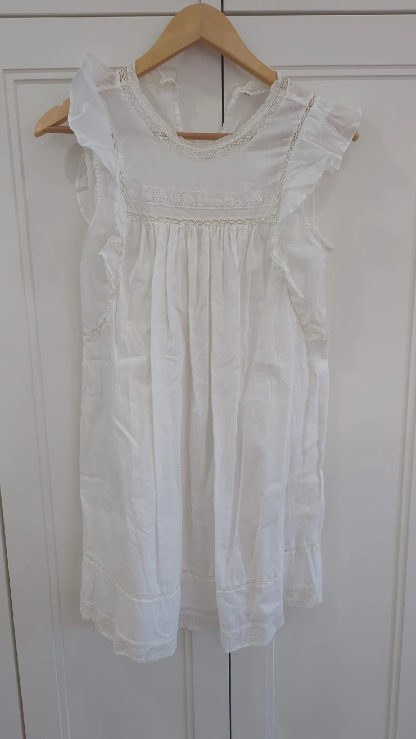 65Selling a cute white dress! It's made of cotton and has lovely lace trim detailing. Perfect for summer or layering. Feel free to ask any questions!