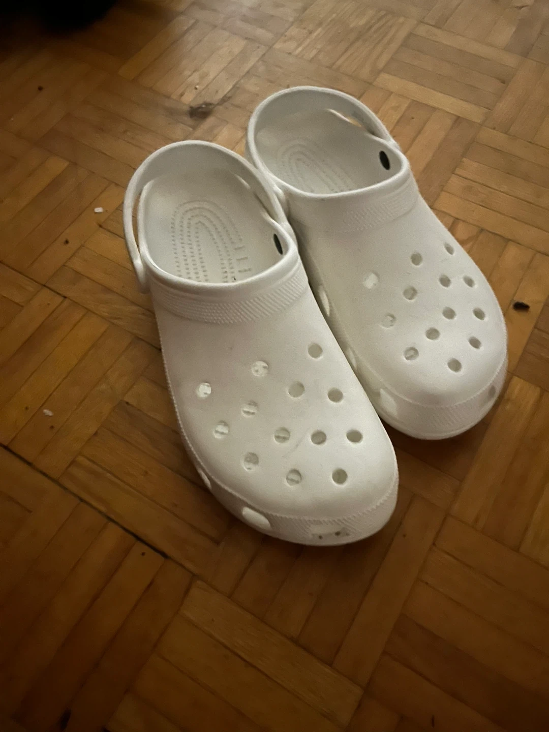 Selling a pair of white Crocs Classic clogs. They are in good condition and ready for a new home. Perfect for comfy everyday wear!