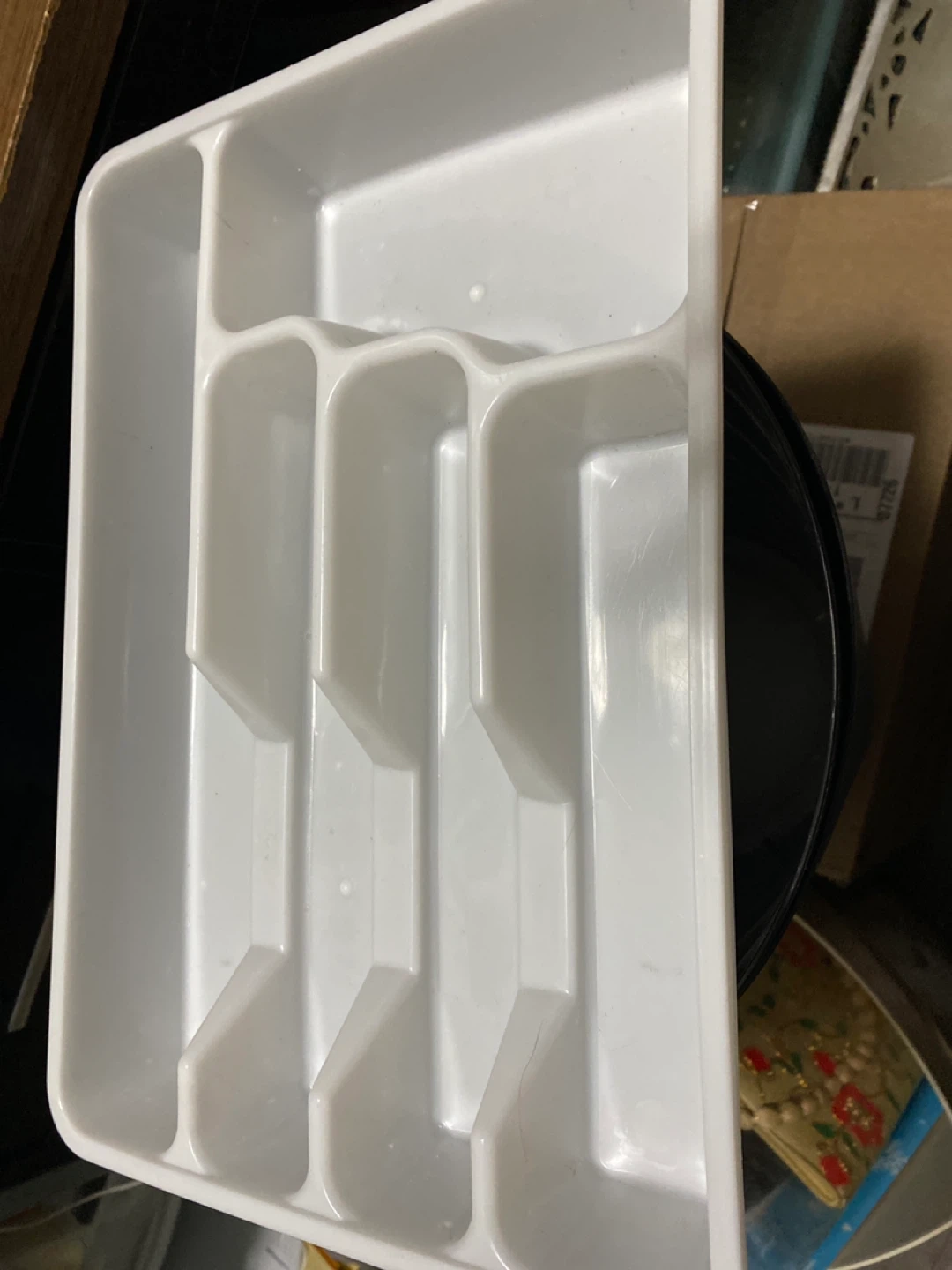 116Selling a handy white cutlery tray to keep your drawers organized! It's in great shape and ready to help tidy up your kitchen. Perfect for keeping your forks, spoons, and knives neatly separated