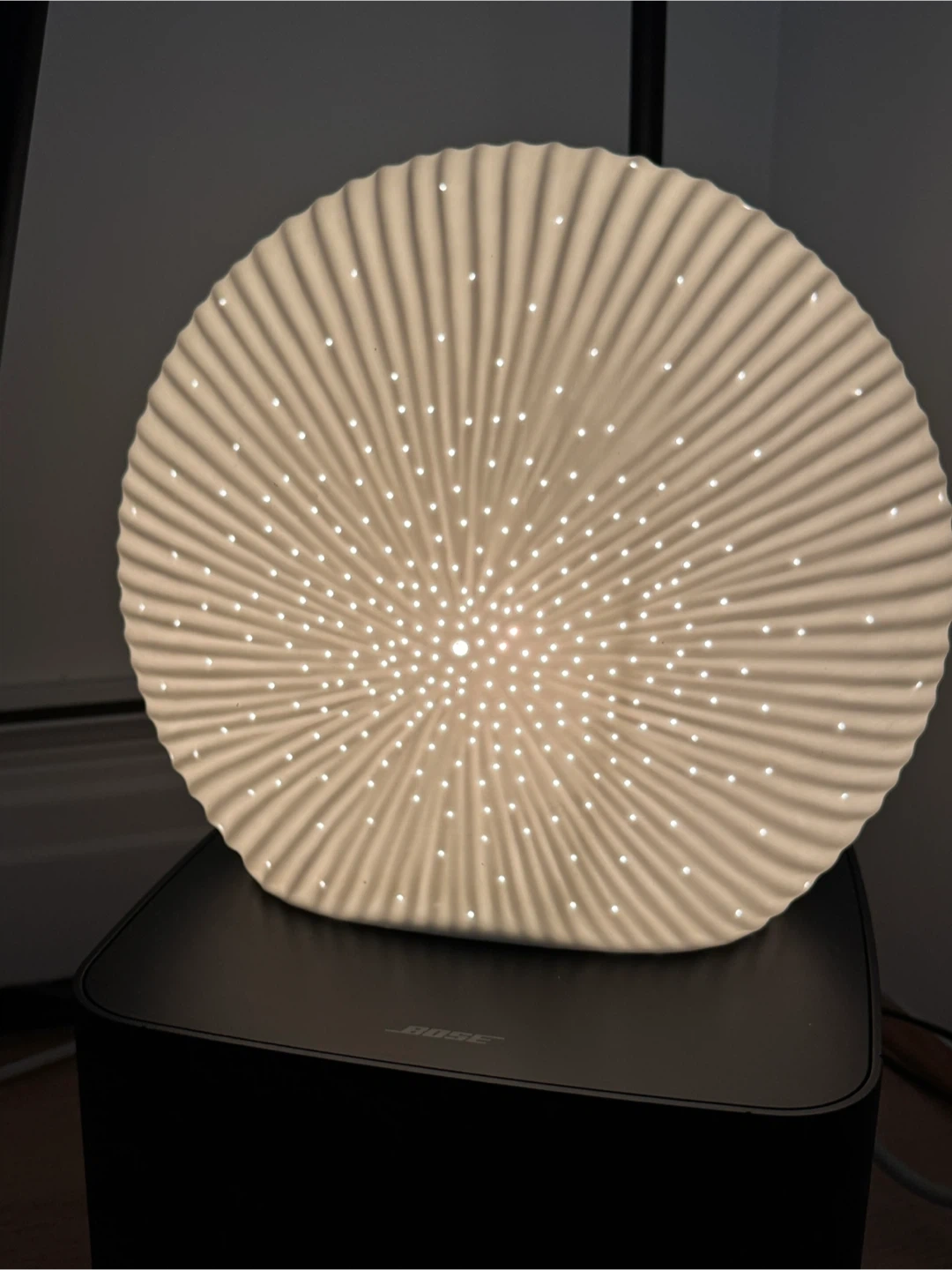 22Selling a lovely decorative table lamp. It has a unique design that adds a warm and inviting touch to any room. Perfect for adding a bit of ambient light to your living space or bedroom